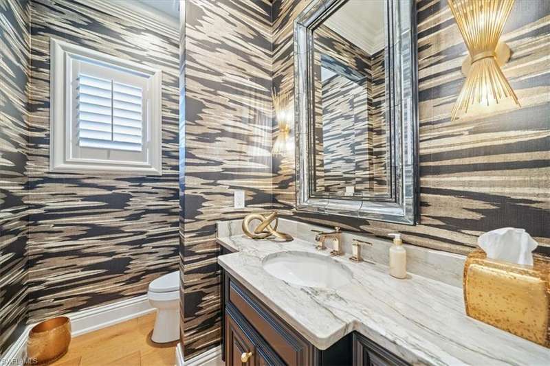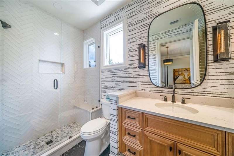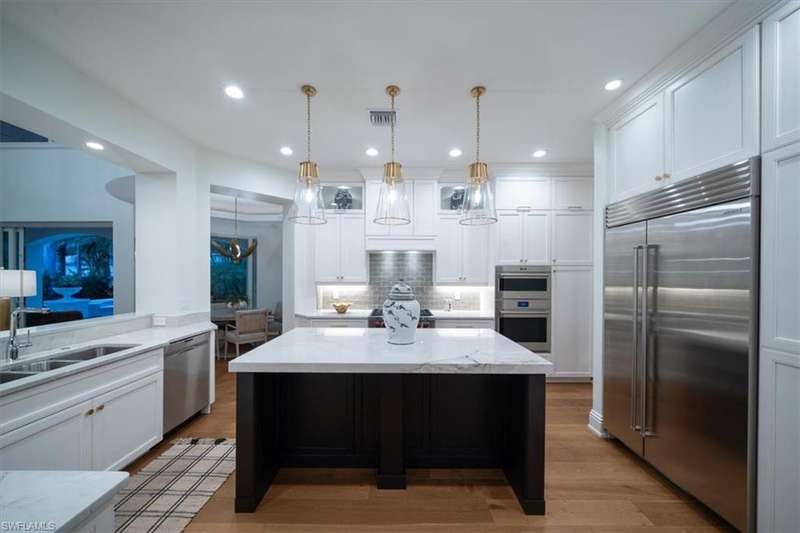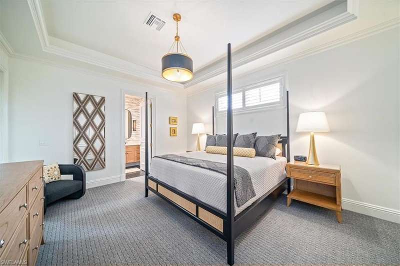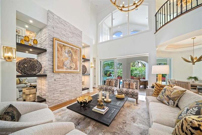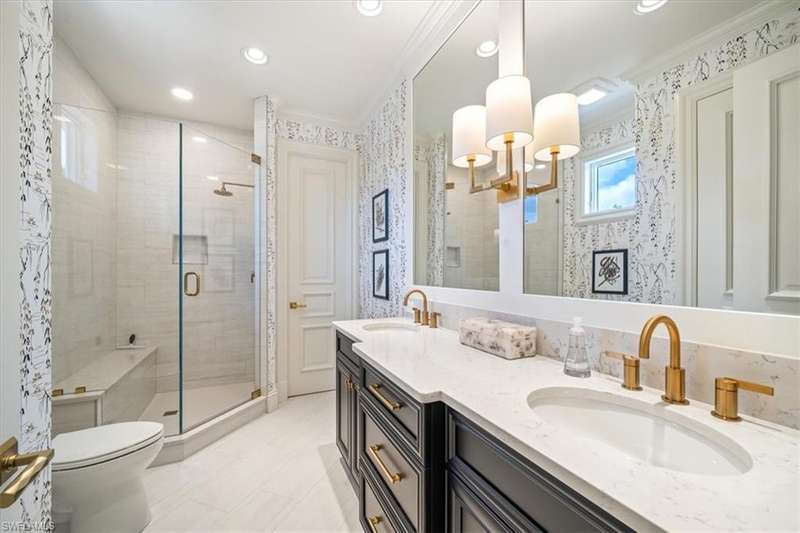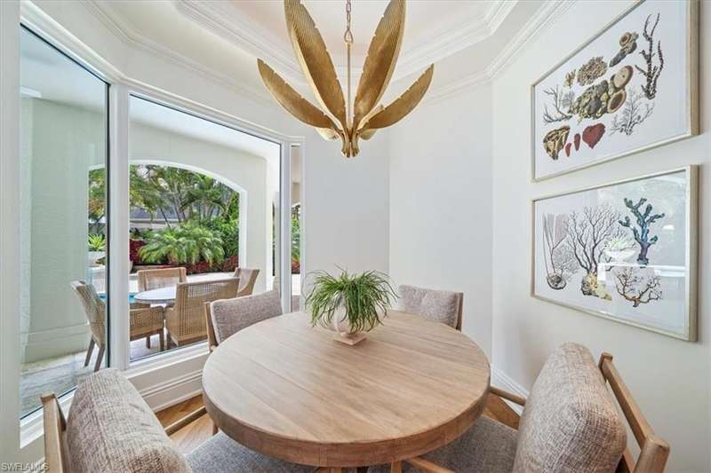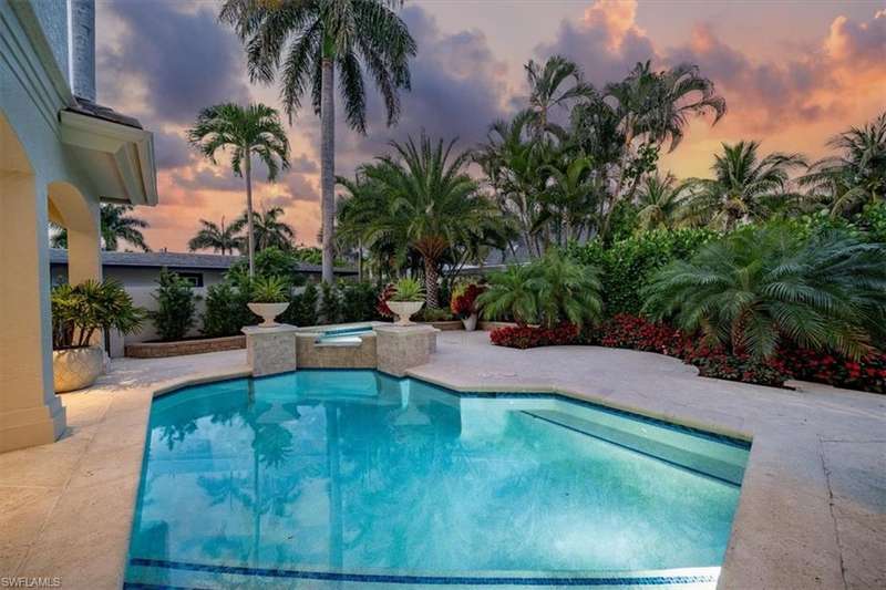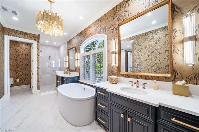 Prepare to be amazed by this exquisite, fully furnished, and remodeled British Cayman inspired haven, just moments from the breathtaking Gulf of Mexico beaches! Positioned a mere three blocks from the shoreline, this luxurious 2-story residence with 4 bedrooms and 3 full and 2 half baths epitomizes the pinnacle of luxury living in Naples. Take a leisurely stroll just five blocks south to immerse yourself in the world-class shopping and dining experiences of 5th Ave S. As you approach, be captivated by the circular paved driveway and meticulously designed landscaping that elevate the curb appeal of this magnificent manor-style home. Enter through the custom Mahogany wood front doors of 33 3rd St and step into a grand yet welcoming great room that offers stunning views of the pool and tropical terrace. The ground floor primary suite features two walk-in closets and a lavish Master Bath. For those passionate about culinary excellence, the spacious gourmet kitchen showcases high-quality ap