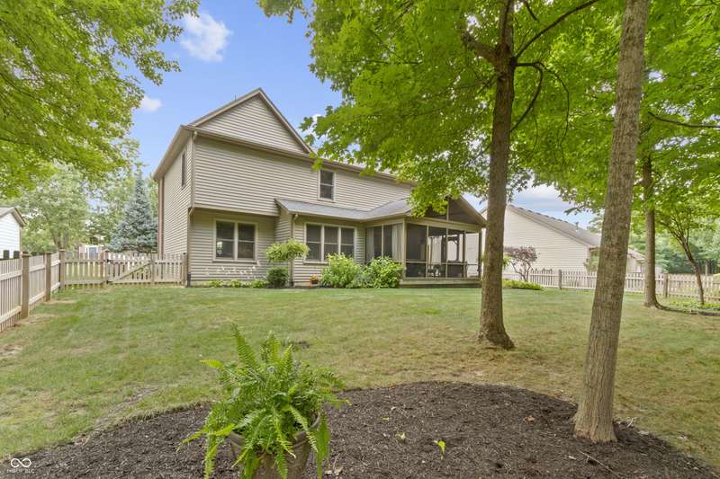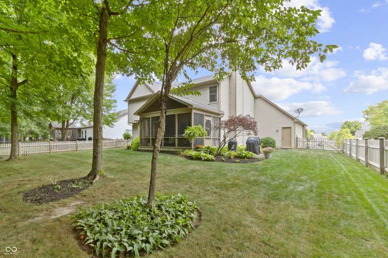 Fishers Retreat near Fishers Market, golf and all exciting Fishers amenities. Privacy and serenity best describes this beauty with updates galore. Enjoy a peaceful view from your 16 x 12 Screened porch overlooking wooded treeline. Proven four bedroom floor plan with finished 29x18 rec/room or office in basement . Professionally installed updates include New Anderson windows, Complete kitchen remodel with granite countertops ceramic backsplash and glass tiles. S/S appliances, under cabinet lighting. Furnace, A/C and water heater less than 10 years old. New sump pump with backup new in 2022. Exterior painted, fencing power washed HVAC vents cleaned inspected and services in 2025. This is a WOW house. Come see it and enjoy.