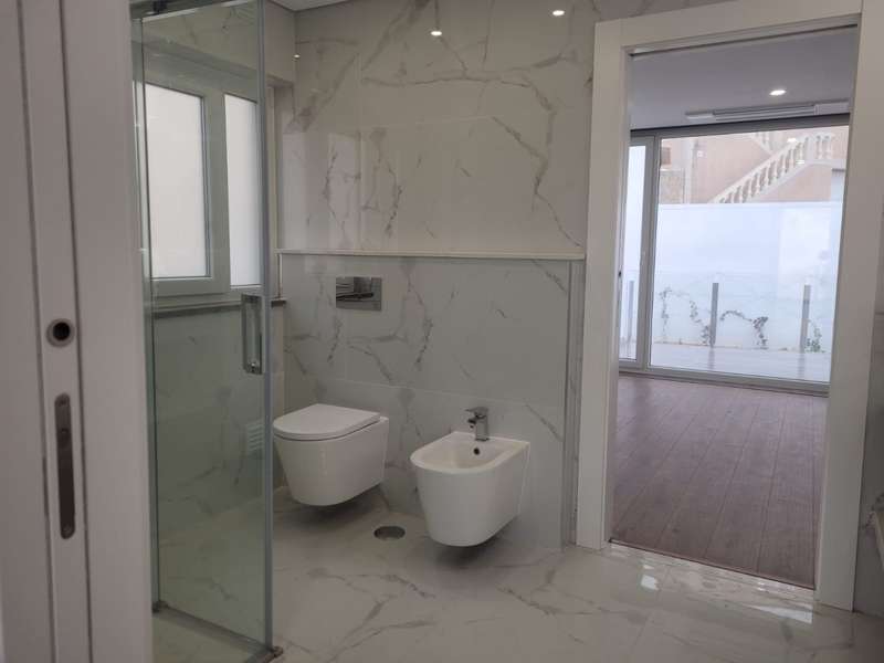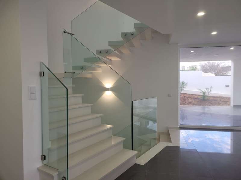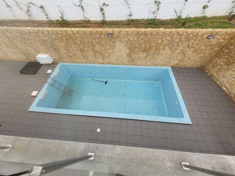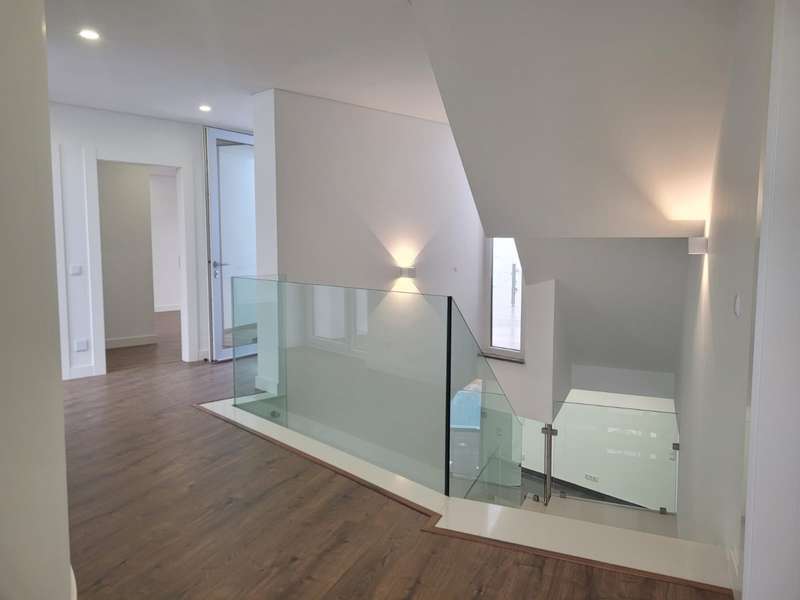 Recently completed, a new construction of a spacious, 4-bedroom detached villa, boasting modern architecture, underfloor heating, and air conditioning in every room, located within a quiet residential area, a short walking distance of the city center and marina of Lagos. The villa is composed of 3 floors, the ground floor of which comprises the living room filled with natural light, adjacent to the open plan fully equipped kitchen, both of which offer direct access to the pool and leisure area. Also on this floor there is a laundry room, a complete bathroom, and an additional room to be used as an office or a fifth bedroom, with a private balcony. On the first floor there are 4 large bedrooms with fitted wardrobes, each with access to a terrace, two of which are en suite, and the remaining two share a large bathroom with double sinks. Access to the large terrace overlooking the pool is gained from the hallway on this floor, which further leads to an enormous rooftop, complete with a stunning sea view and space to add a jacuzzi. In the basement, there is a garage with space for two cars, a storage area, a bathroom, and two large additional rooms which would be ideal for a games room, gym, or home theater. On the exterior of the property, there is a low-maintenance garden and a space to park an additional car. This villa is about one hour to Faro International Airport, close to several prestigious golf courses, many aquatic activities, and close to all essential amenities. CHARACTERISTICS: Plot Area: 554 m2 | 5 963 sq ft Area: 277 m2 | 2 986 sq ft Useful area: 209 m2 | 2 245 sq ft Deployment Area: 138 m2 | 1 483 sq ft Bedrooms: 4 Bathrooms: 5 Energy efficiency: A+ FEATURES: 4 bedrooms Fully equipped kitchen Pool Balcony / Terrace Garage Laundry Underfloor Heating Air conditioning