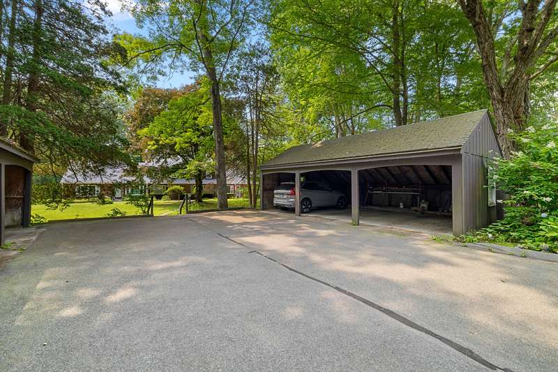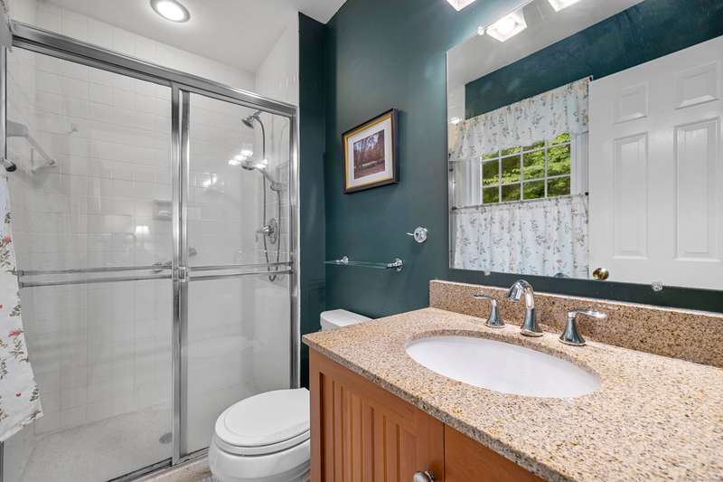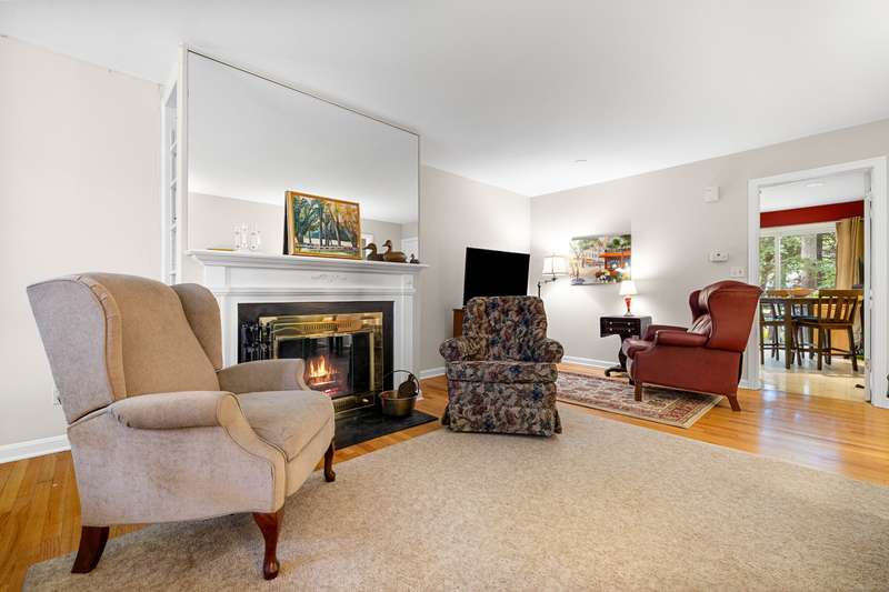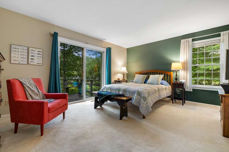 Enjoy accessible one-floor living in this ranch-style end unit located in the desirable Riversedge condo complex, a 40-unit complex along the Falls River that offers privacy and convenience in a parklike setting. Inside, you'll find 2 spacious bedrooms, 2 full baths, first-floor laundry, an eat-in kitchen, living room/dining room combo with warm wood floors and a cozy fireplace with built-ins. Sliders from both the kitchen and primary bedroom offer direct access to an expansive private deck-perfect for relaxing among lush greenery, watching local wildlife or enjoying your morning coffee. The partially finished walk-out lower level offers an additional 628 sq/ft of flexible space for an office, family room, workout area, or guest room with the added convenience of a door to your backyard. Plus, an additional 628 sq/feet of abundant storage. A carport provides additional storage and parking. In the warmer months take advantage of the beautifully landscaped pool with changing facilities,