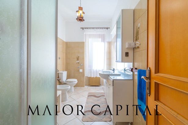 On the first floor, there is a separate flat, to be completed, including a living room, a dining room, a separate kitchen, three bedrooms and two bathrooms. This floor, independent from the rest of the house, can be easily adapted to suit your needs, creating additional living space or a separate unit.
