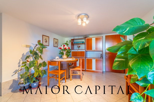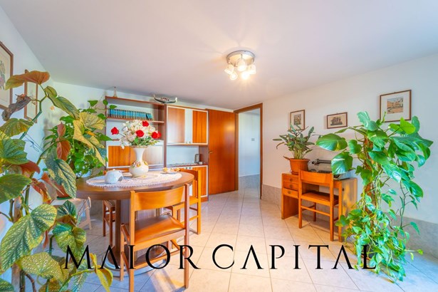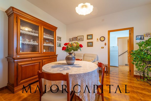 The main body of the house, located on the raised ground floor, is accessible via a small staircase and offers a spacious and bright living room, designed to ensure comfort and space. The separate dining room can easily be converted into a second living room, while the separate kitchen stands out for its functionality. The sleeping area, consisting of three double bedrooms, offers flexibility in the use of space, and the bathroom with shower and window completes the floor.