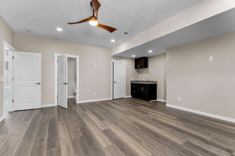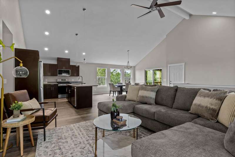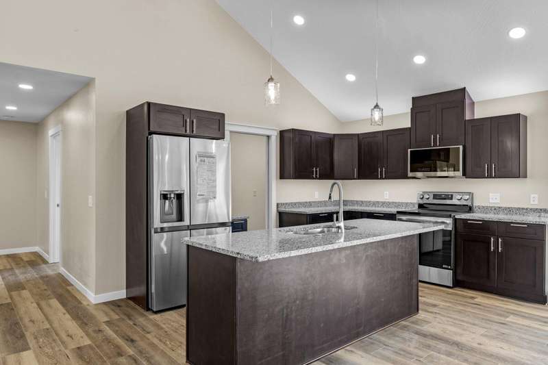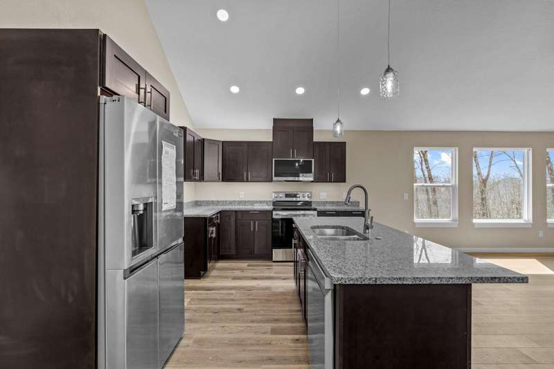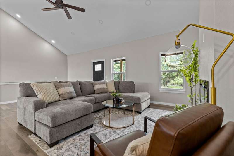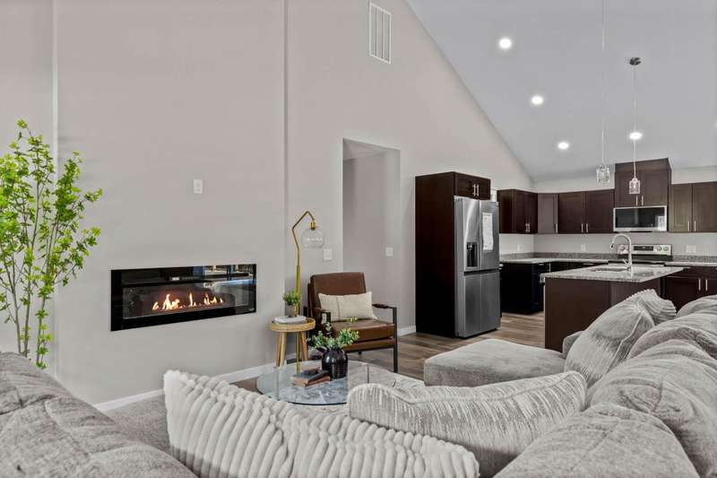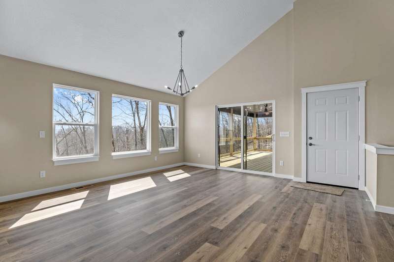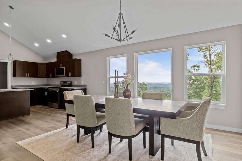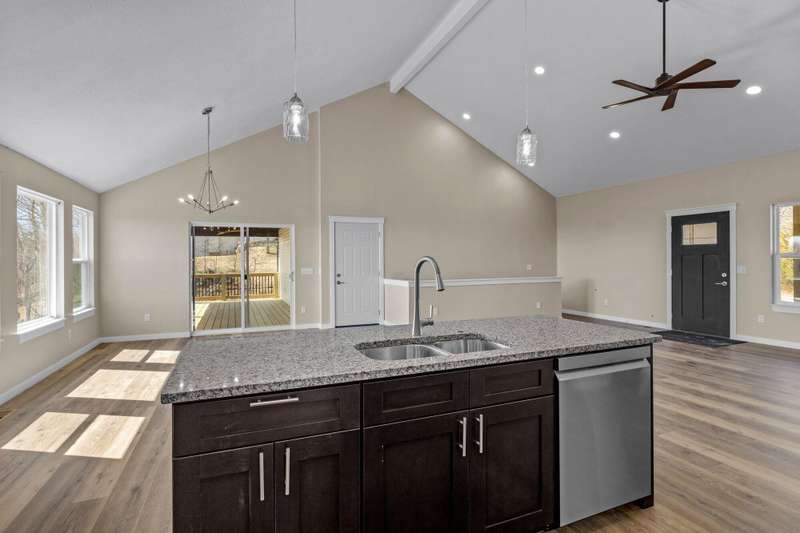 MOVE-IN READY MOTIVATED SELLER!!Welcome to this stunning contemporary ranch home on just over an acre, perfectly located minutes from shopping and diningwhile still offering peaceful, wooded views. Step inside to an open, light-filled living area with soaring ceilings and a stylish electric fireplace as the focal point. The modern kitchen is designed for both everyday living and entertaining, featuring a central island, granite countertops, stainless steel appliances (including the refrigerator), and a generous walk-in pantry. This home offers 4 spacious bedrooms, a dedicated office, and 3 beautifully finished bathrooms. The private Mother-in-Law Suite is a standout, complete with its own kitchenette areaideal for guests or multi-generational living. You'll appreciate the thoughtful upgrades throughout, including a Wi-Fi thermostat, security cameras, on-demand water heater, water softener, and contemporary lighting. The over-sized two-car garage and heated/cooled John Deere Room provide plenty of workspace and storage, with easy access to the crawlspace, additional storage areas, and a storm shelter for peace of mind. Step out onto either of the rear decks and take in the serene wooded backdrop and gorgeous viewsperfect for morning coffee or evening relaxation. This will be the perfect home for any family. Don't let this one get away!!!