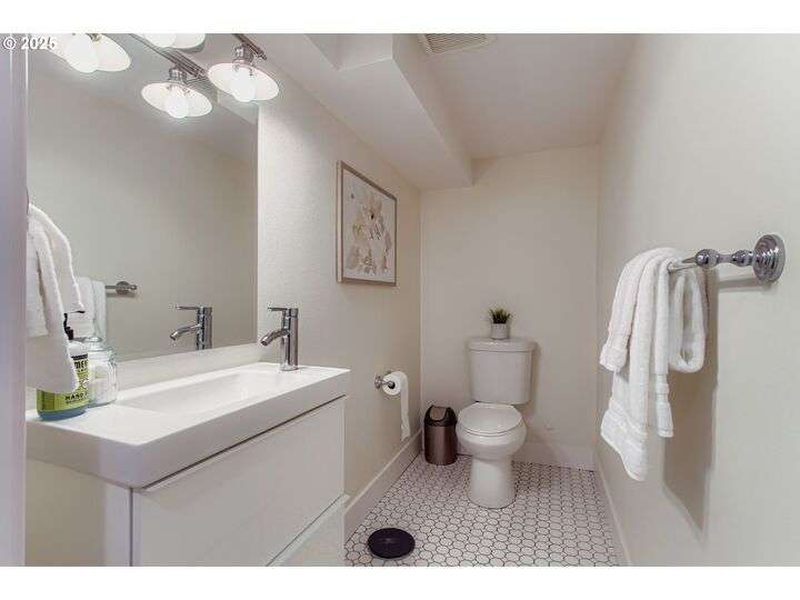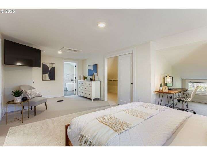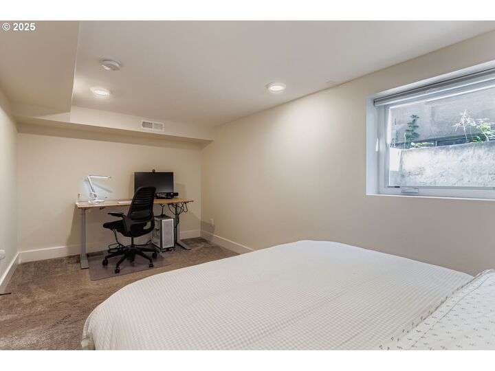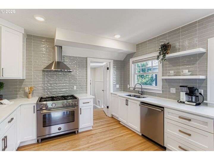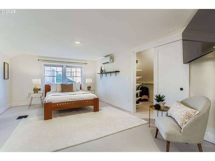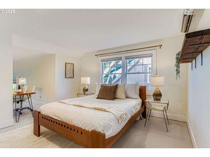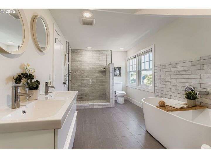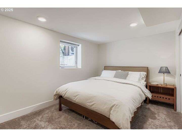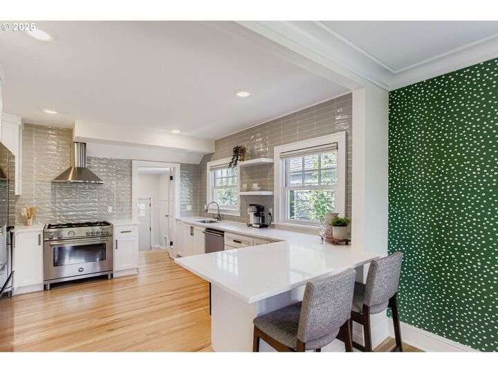 Sophisticated Alameda Bungalow seamlessly blends timeless charm with thoughtful modern upgrades in one of Portland’s premier neighborhoods. Original details—coved ceilings, French doors, and gleaming hardwood floors—set the stage for light-filled living spaces. The spacious living room with fireplace flows easily into a chef’s kitchen featuring quartz countertops, a striking tile backsplash, top-of-the-line appliances, and a generous eat-in bar. A dining room with lively wallpaper adds personality and elegance.Two main floor bedrooms with hardwoods share an updated full bath with a tiled shower. Upstairs, the stunning primary suite feels like a private retreat with new wool carpet, two separate walk-in closets, and a spa-inspired bath with soaking tub, tiled walls, and separate shower. A dedicated mini-split system ensures year-round comfort. The lower level expands your options with a generous family room, half bath, and an additional bedroom, perfect for guests, hobbies, or a work-from-home office.Sellers love the peaceful backyard anchored by a graceful Japanese maple, which turns red in the fall and provides refreshing shade in the summer. This manicured backyard garden has a new fence and gate that frame this private space. The long driveway and detached garage offer convenience. Practical upgrades offer peace of mind: new mini-split systems in the upstairs suite (2022) and second bedroom (2024), electrical panel expansion (2024), radon system, new exterior paint (2025), and sewer replacement (2018). A major remodel was completed in 2019. Newer high-quality double-pane windows and doors. The location is unbeatable—just a short stroll to Wilshire and Grant Parks, and close to Beaumont Village with Grand Central Bakery, Prince Coffee, taverns, and more. Best of all, you’re only minutes from neighborhood favorites like Tacovore and Beaux Berry, the perfect spot for tacos, ice cream, and community connection. [Home Energy Score = 2. HES Report at https://rpt.greenbuildingregistry.com/hes/OR10034172]
