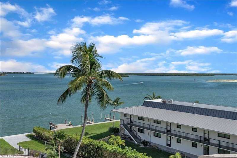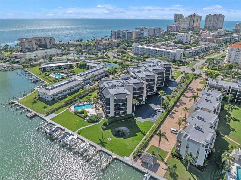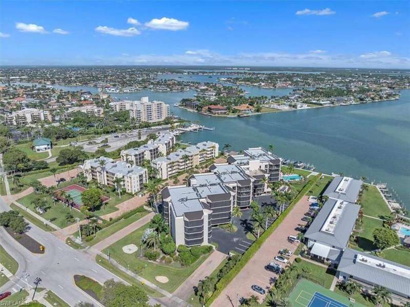 Southern-end condo offering panoramic Gulf views from every room! This light-filled residence showcases the beauty of waterfront living with sweeping vistas. This condo's location gives you beautiful close up views of wide water from every room. It's almost like living on a houseboat. If you are looking for wide water views this is the home for you. Step into a bright, spacious 3-bedroom, 2 bath residence with abundant natural light and two large screened lanais that invite you to watch sunrises over the water and unwind at the end of the day. The guest bathroom was renovated in 2024 with a clean modern look. Every condo is designed so you do not share a wall with a neighboring unit, which means added privacy and quiet. An elegant lobby and easy elevator access lead to your door. Each unit has its own covered parking space. The building is exceptionally well maintained.The association reports strong financials and passed the structural integrity study for peace of mind.There is an option to lease a boat slip and the community's seawall and docks were updated this year. Amenities include a Golf-view swimming pool, hot tub, a large social room with a full kitchen for hosting gatherings. A rooftop terrace offers another spot to relax with friends and take in the water views. A private guest apartment is available for owners to rent when friends or family visit and there is an onsite storage space for each unit. You are only 4 blocks from Marco Island's beach, with resident parking and public access. Dining, entertainment and the movie theater at Marco Walk Plaza are less than 1.5 miles away. This is a coastal condo that puts the unmatched views of the Golf front and center, with the amenities and location to match.