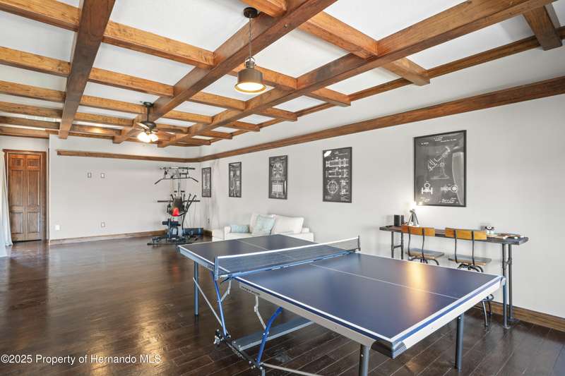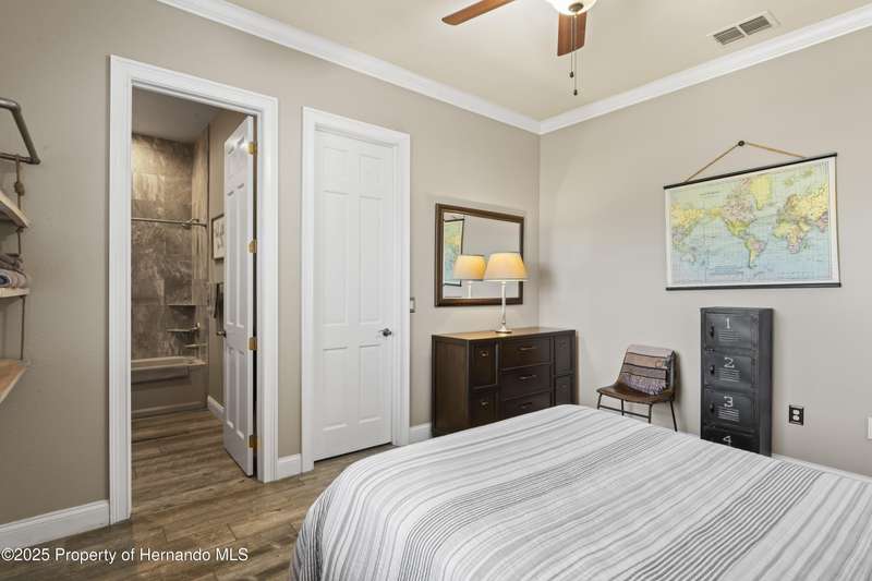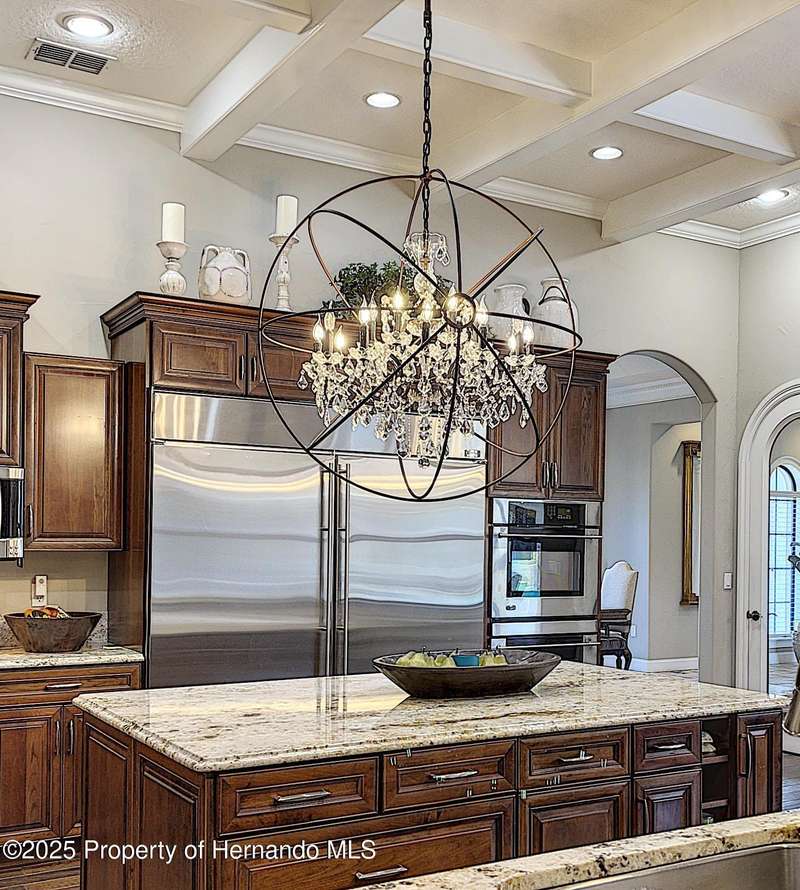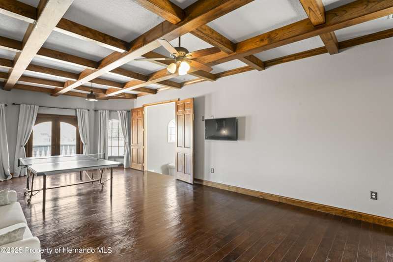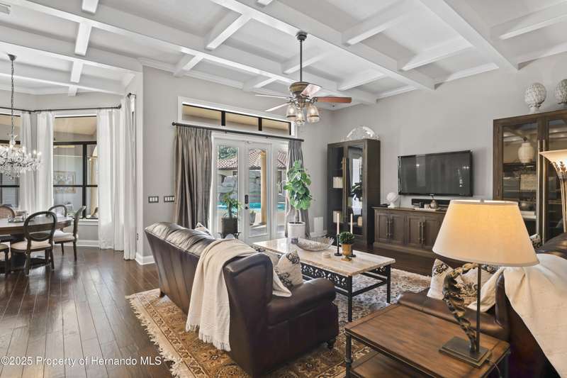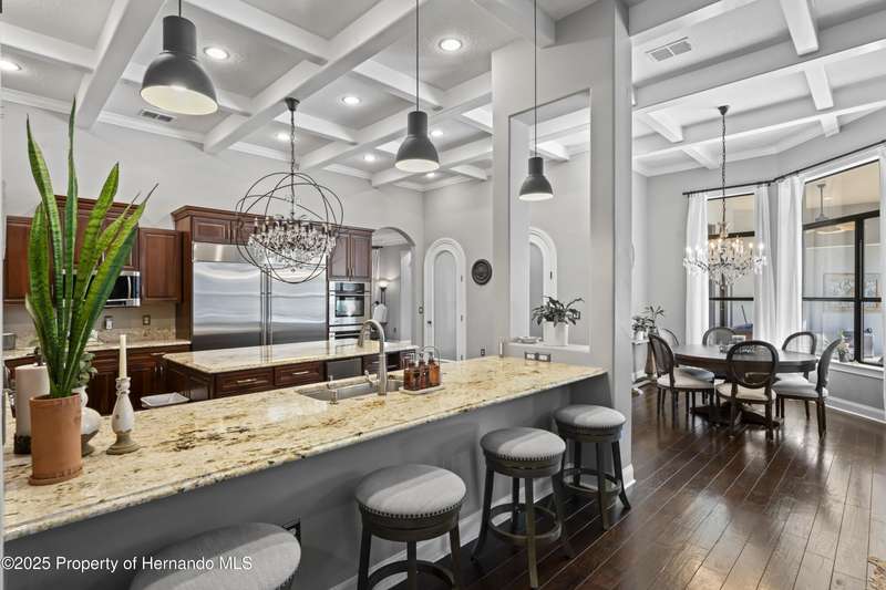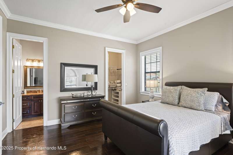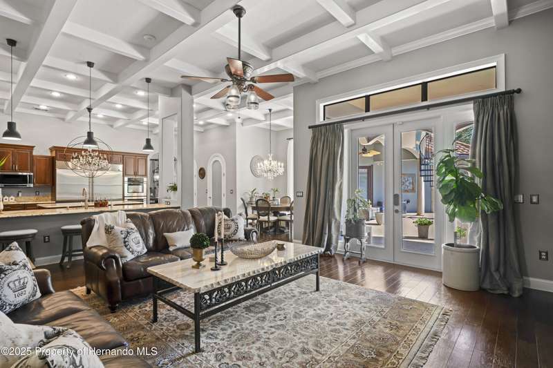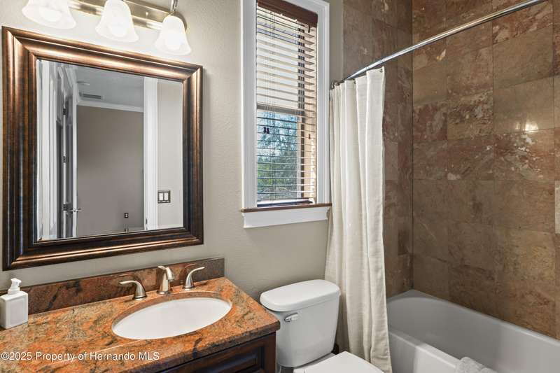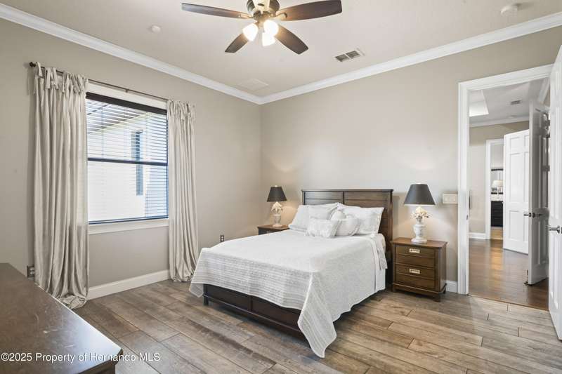 This Mediterranean inspired, resort-themed home sits on a quiet street in Woodland Waters, an exclusive subdivision of estate sized parcels. With over one acre of manicured grounds this property is the ultimate residence if you are looking for perfection and privacy. The architect, builder and designer created a residence that blends natural light, soaring ceilings with exquisite architectural details in a manner that is grand in stature but at the same time, warm and inviting. The residence encompasses 6266 sf. of heated/AC space with 4000+ of outdoor entertainment space. The interior is bespoke with an array of cabinetry, top-grade sourced granite, imported marbles and tile, fine hardwoods and plastering. The Property includes a pool house/guest house with high ceilings, a full bath and kitchenette. Architectural details in the main residence feature soaring ceilings, hand scraped wood floors, a chef's kitchen with 6 burner gas stove and a 72'' refrigerator/freezer, walk in wine room, attached pantry and exquisite lighting. In the living room, both the windows and fireplace rise from the floor to the ceiling and are overlooked by a sitting room from the second story. There are four en suite bedrooms on the main floor, three connected with a gathering/office/work study area. Dine in either the striking dining room, the breakfast alcove or seated bar area. Numerous doors lead to the outdoor pavilion/pool area including from the family room, two from the primary bedroom and one from an additional bedroom bath. The upstairs sitting area leads to a Media/Rec room (or other creative use) with high beamed ceilings and a full bath, Juliet balcony, with covered outside patio area and spiral staircase. The backyard pavilion includes a resort-like heated pool with nighttime lighting, several fountains and waterfalls. Adjacent and under roof is an outdoor kitchen, dining space and fireplace with TV. The connecting guest suite encompasses 700+ sf and has a kitchenette, full bath and Clive Christian cabinetry. The suite can be used for entertaining as well as sleeping. Each of two oversized garages can hold 3 cars on PVC commercial grade flooring (6+ vehicles total) with one garage having a rear entrance. The backyard of the property is totally fenced and landscaped for privacy. A 12 zone irrigation system utilizes well water covering lawn/gardens. Special in wall insulation,4 zone HVAC, central vacuum, landscape lighting and many recent utility and appliance upgrades. Home also features UV water filters and double tankless water heaters. Sitting high on a rolling hill and safely inland (low insurance and no flood requirement) this home is less than 10 mi. to Weeki Wachee Spring State Park, Pine Island and Hernando Beach. Tampa International Airport is only 51 minutes away and every shopping convenience is nearby. If you enjoy living in quiet privacy, security and beautiful surroundings this home is for you. The residence defines perfection. Walk around the low-maintenance yard and lava rock gardens, then take a nap in the hammock... before swimming in the large heated pool in total privacy with no neighbors' residences in sight...then change (or put on clothes) in the guest/pool house (using the second washer/dryer for towels) before returning to the main residence to relax in what may be the most Exquisite Living Experience in all of Hernando County. Showings with 12-24 hour notice to qualified buyers only. Call to schedule.