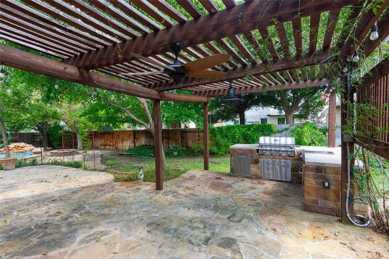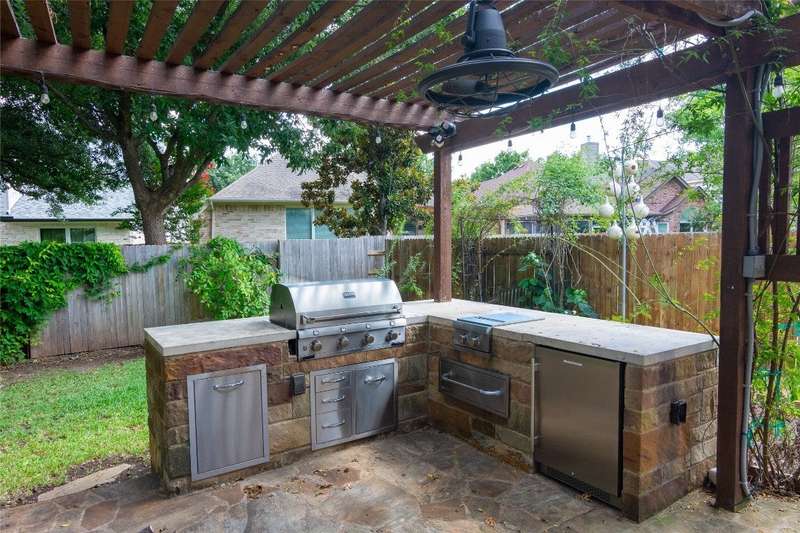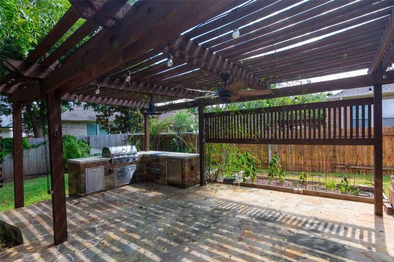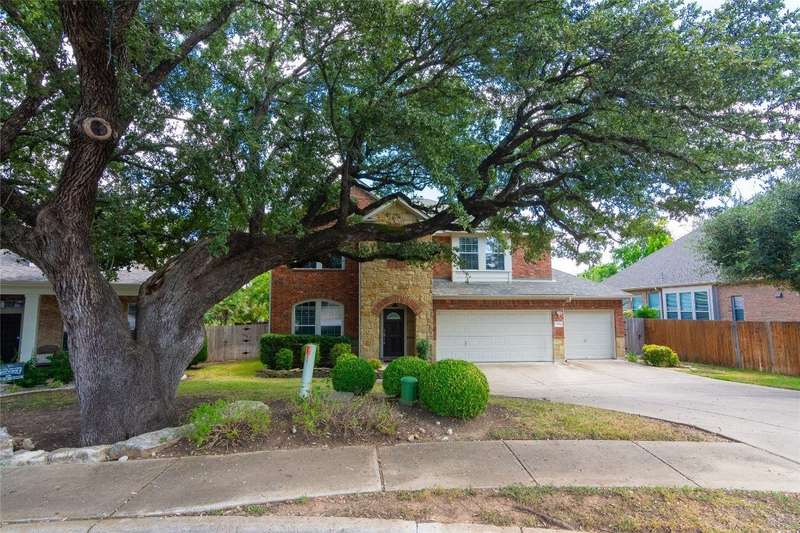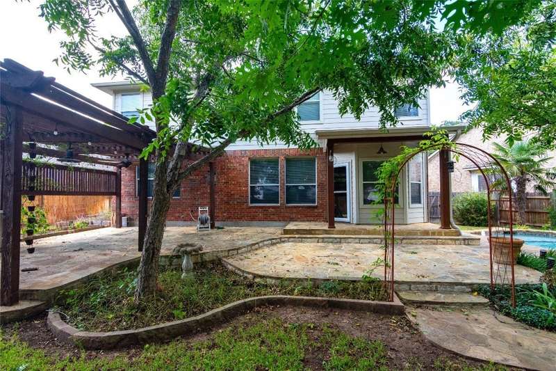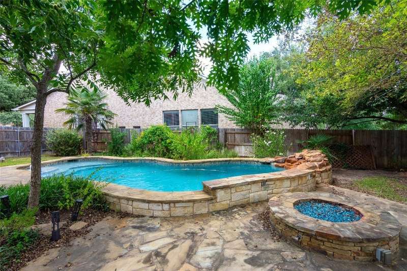 Be Dazzled by this 5 bedroom, 4 full bath, two story home in Westside at Buttercup Creek * Situated on a .21 acre cul-de-sac lot, nestled under a lovely oak tree * The backyard features an inground pool with a water fall, built-in gas firepit with shimmering blue glass that matches the pool, outdoor kitchen, extensive flagstone patio, arbor, full gutters, sprinkler system & raised cedar garden beds with irrigation * Interior features include hand scraped hardwood flooring, new carpet (8/2024), 15 ceiling fans, 2 pantries & 6 panel doors * State of the art kitchen has granite counters with an expansive island, stainless appliances including GE Cafe Double Oven gas range, wine fridge, microwave, dishwasher & Samsung French door refrigerator * The owner's retreat boasts of an additional space that could be used for a personal gym, sitting area, nursery, study, the possibilities are endless * The master bath has an enormous walk in closet, dual sinks, soaking tub & separate shower * The utility room is upstairs with the majority of the bedrooms & comes with a front load Samsung washer & dryer (2021) * Desirable open concept floor plan with a bedroom & full bath on the the main level & 4 bedrooms, 3 baths & game room upstairs * Other updates include but aren't limited to interior & exterior painting, roof replaced (2021), water heater replaced (2021) * Super easy access to schools, employers, shopping, restaurants & the upcoming Bell Boulevard District where the new Cedar Park Library & farmer's market are located * Low tax rate of 1.9718% per WCAD