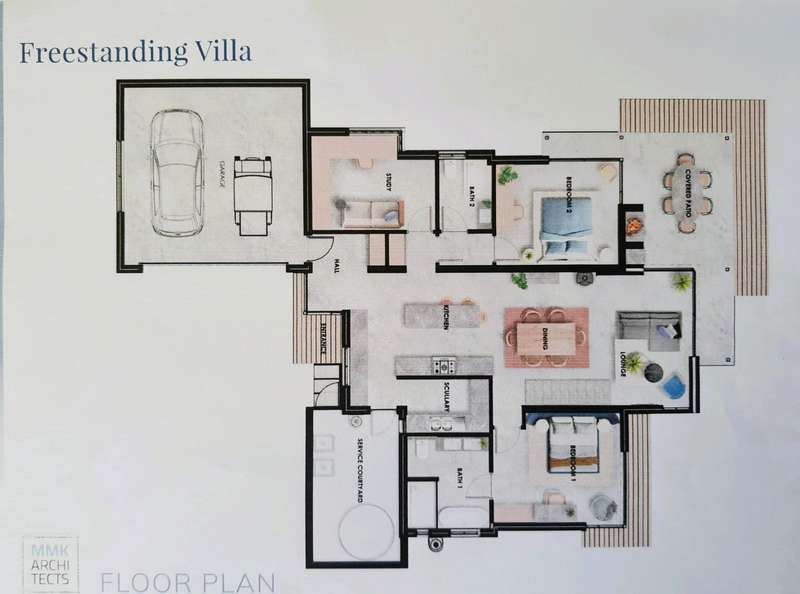 The Grass is Greener on the 18th fairway. Welcome to the good life made easy at the exclusive brand-new development in the St Francis Links estate. “The Villas” situated on the 18th fairway, is adjacent to the Clubhouse and overlooks both the St Francis Bay & the World-class Jack Nicklaus Signature golf-course. Investors in this development have access to all the amenities in the greater estate including the Clubhouse with a lavish restaurant, gym, 20m heated pool, Spa, Wellness Centre and facilities for conferences, weddings & family fun. There are also safe nature trails, with 24-hour controlled access security. With 35% already SOLD, The Freestanding Villas (Type D) offers: • Open plan kitchen, lounge, dining, including a freestanding wood burning fireplace. • Separate scullery leading to an enclosed courtyard and a water tank. • Two well sized bedrooms with BIC plus a study / 3rd bedroom. • Linen Cupboards. • 2 bathrooms with a full main en-suite shower, bath, double basin & toilet. • The mezzanine can be used as a PJ lounge/ study or hobby room. • Covered patio includes a built-in-braai with amazing 18th fairway views & the St Francis Bay. • The cavity sliding doors opens seamlessly allowing you to experience the full view of the 18th fairway and to bring the outside in. • Double garage. • Selling price range from R5.250,000 – R5.550,000. Total Purchase Price includes all Conveyancing fees; No transfer duty; Body Corporate Levy stabilisation fund fee; St Francis Links HOA Joining Fee. Includes SFL Golf club membership and green fees and more! For access and a private viewing call Irene: 076 965 0383 and Hannalo: 082497 1834