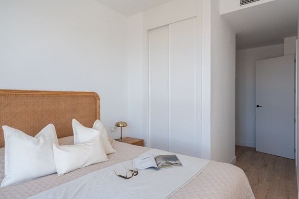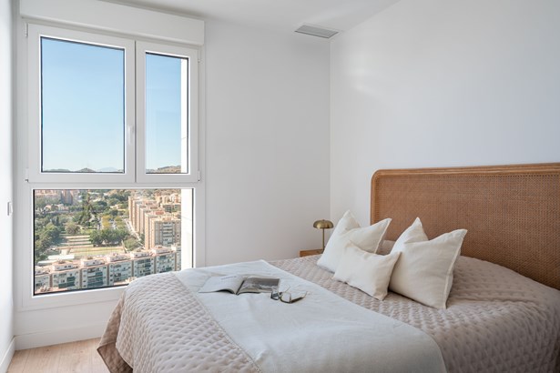 Located on the 22nd floor of the iconic North Tower at Torres de Martiricos, this two-bedroom apartment combines contemporary design, spectacular views, and an exceptional urban lifestyle.The Torres de Martiricos, also known as AQ Urban Sky, have become one of Málaga’s most remarkable residential landmarks, redefining the city’s skyline and symbolizing a new era of modern living. With over 30 floors of elegant architecture, it’s one of the tallest and most desirable developments in southern Spain.From this privileged location, you’re just minutes from the historic centre, the Guadalmedina River, main roads, and the airport. The connection to Málaga’s Tech Park makes it an ideal choice for professionals and digital nomads seeking a comfortable home base in one of Europe’s most dynamic cities.The apartment’s layout is designed for both comfort and style. A practical laundry and storage area welcomes you at the entrance, followed by an open-plan living and dining space with a sleek