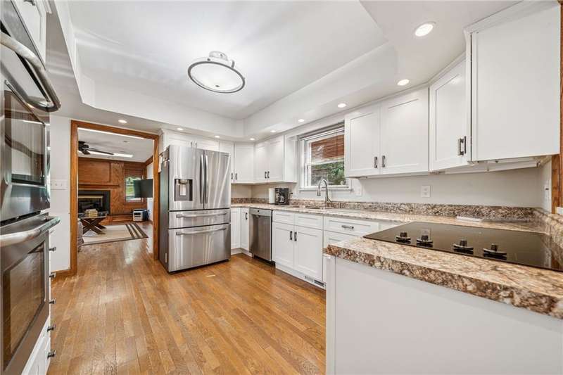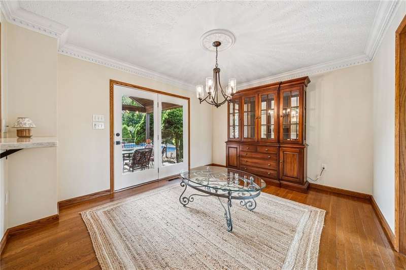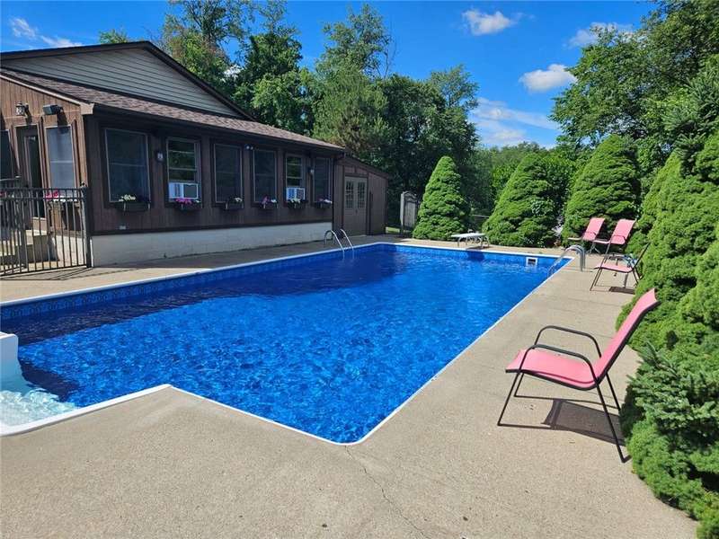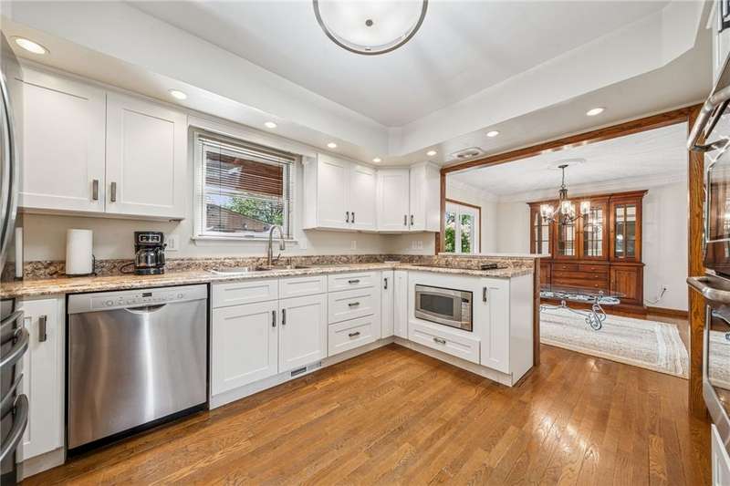 This beautiful home offers an impressive array of features that are sure to exceed expectations! From the moment you step inside, you are welcomed by a spacious main floor that includes a stunning updated kitchen, natural light that fills the formal living room, while the adjacent dining room & cozy den provide the perfect space to relax by the large fireplace. A laundry room on the main level includes ample cabinetry & generous storage space. Upstairs, you will find 3 bedrooms & 2 updated bathrooms. The lower level presents endless possibilities, featuring a large living area, kitchenette, & additional multipurpose room, ideal for guests, work, or gym. Parking/storage is no issue w/ an integral & detached garage & oversized driveway. Step outside to enjoy the peaceful setting from the covered porch overlooking a private POOL. Attached to the detached garage is a charming pool house offering a sitting area, small kitchen, & full bath, making this property truly an entertainer's dream!!