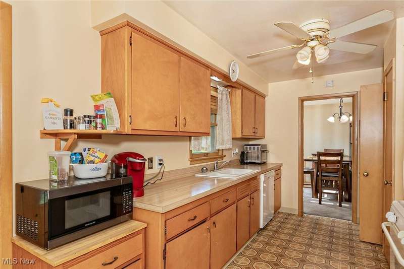 Welcome to this beautifully maintained 4-bedroom, 2-full-bath home, perfectly situated in a quiet Euclid neighborhood. Step into the bright and airy living room, featuring a large picture window that fills the space with natural light. The open layout flows seamlessly into the formal dining room and into the generous eat-in kitchen, complete with ample cabinetry and all included appliances.A convenient door off the kitchen leads to a covered patio and a spacious backyard?ideal for relaxing or entertaining guests.The first floor offers two comfortable bedrooms and a full bath, providing a flexible layout for main-level living. Upstairs, you'll find two expansive tandem bedrooms with warm wood floors, another full bath, and excellent closet space. Choose your master bedroom on either floor to suit your lifestyle. The fourth bedroom also makes a great home office or flex space.Additional highlights include a massive attic for all your storage needs and a full lower level with laundry area and endless potential for finishing. A 2-car attached garage with hot and cold water, plus even more storage space, adds to the home's convenience.Great location close to everything?this home is a must-see! This is an estate and being sold as is, basement needs waterproofing. Buyer to assume POS.