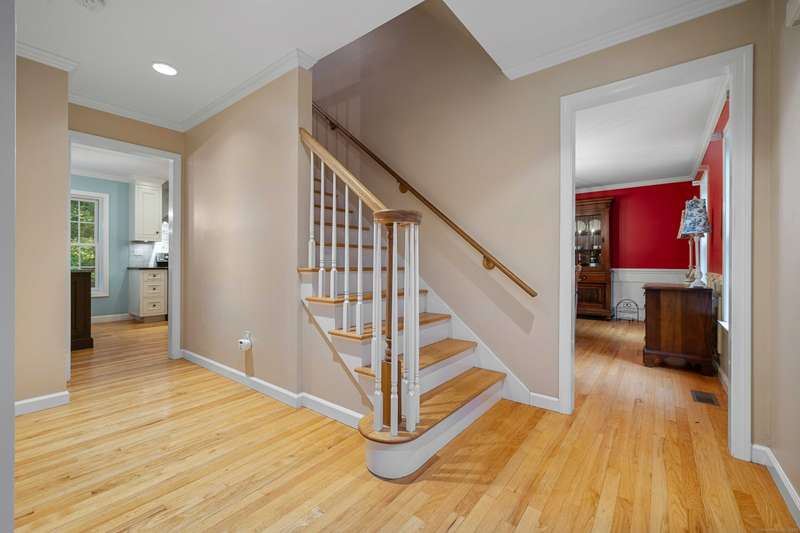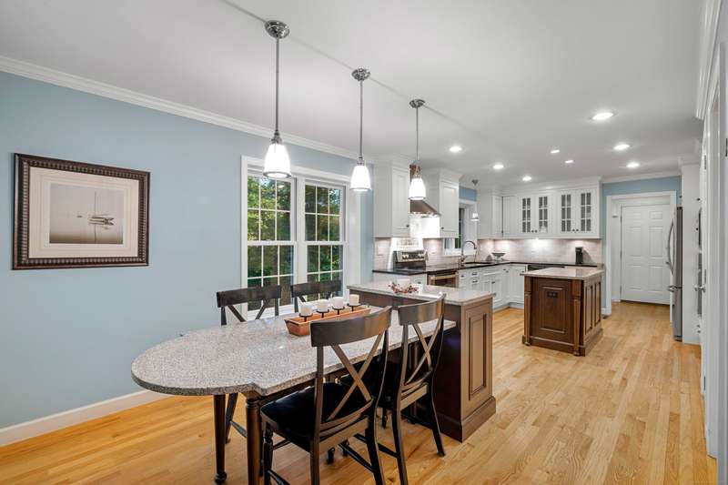 Set on a private lot just minutes from town, top-rated schools, recreational facilities and beautiful beaches, this elegant 4-bedroom Colonial offers both charm and convenience. The spacious first floor features a beautifully updated kitchen with white cabinetry, granite countertops, and a pretty backsplash. The Gedney kitchen flows seamlessly into a warm and inviting family room - perfect for gatherings and everyday living. At the front of the home the formal dining and living rooms add a touch of stately elegance, ideal for entertaining. Upstairs you'll find four bedrooms including a large primary suite complete with a walk in closet and a private ensuite bath. A second-floor laundry room and a walk-up attic add to the home's functionality and storage options. Recent updates include a brand-new roof and a spacious new deck - ideal for relaxation in the serene backyard setting.