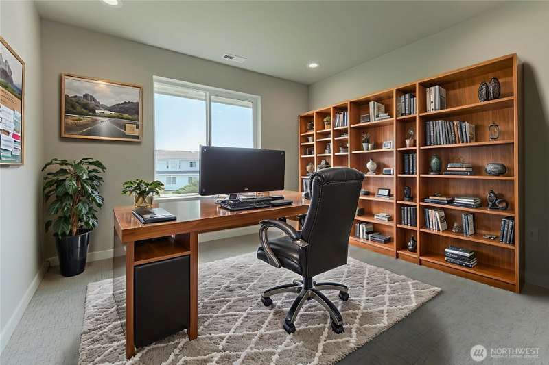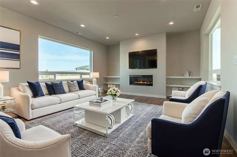 New home in the much sought after neighborhood of Kestrel Point. This 2854 square foot plan includes 4+ bedrooms, large bonus room upstairs and a main floor guest room or office for working from home. The large kitchen has plenty of cabinets and a big island for entertaining, along with under cabinet and toe kick lighting. The exterior features include vinyl fencing, underground sprinklers and a see through gas fire place. The home comes equipped with two furnaces and two AC units to make sure each space is comfortable.The interior has quartz countertops throughout, solid core doors, double oven, walk in shower in the primary bathroom and main floor bathroom.