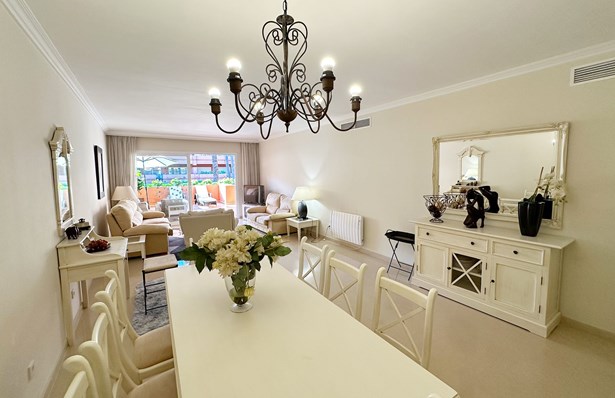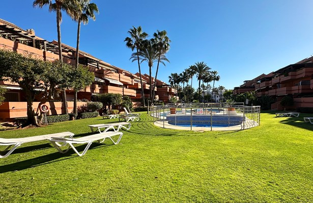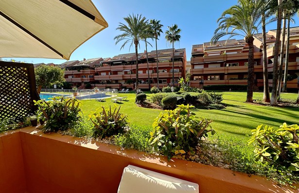 Just 100 meters from the shoreline and a short stroll to Puerto Banús, this stylish apartment offers a bright open-concept living space that flows effortlessly onto a spacious 40 m² private terrace, with direct access to beautifully landscaped gardens and two inviting communal pools.The property features two well-proportioned bedrooms with built-in wardrobes, while the primary suite boasts direct terrace access and a private en-suite bathroom.Located within a secure, gated community with 24-hour security, the apartment also comes with a private garage and access to two exceptional swimming pools.A rare opportunity to own a home in one of Marbella’s most desirable beachside enclaves.
