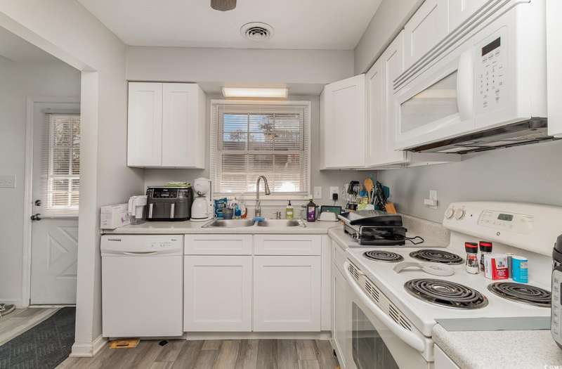 Great location within walking distance to CCU/ HGTC campuses and just a short drive to the beach and downtown Conway! This 2 bedroom, 1.5 bathroom unit has been updated with a brand new HVAC system, luxury vinyl plank flooring, and a remodeled bathroom. It boasts a private fenced patio out back perfect for relaxing or gardening. There are also two community pools for residents to enjoy. Don't wait; schedule your showing today. All information is deemed reliable, but verification is the responsibility of the buyer.