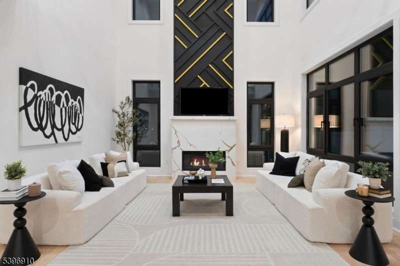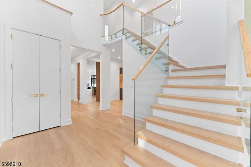 Brand New Construction by NJGCB, a leader in Modern Architecture and Design. Contemporary Style meets Luxurious Living in this stunning Custom Smart Home with over 5,200 sq ft of livable space spanning three levels. An Impressive Home with Floor to Ceiling Windows, Modern Glass Staircases, and Open Concept Living. First Floor w/10ft Ceilings, Formal Living Rm, Formal Dining Rm, Large Two-Story Height Family Room with skylights and Gas FP. Sliders leading from Family Room to Deck and Stone Patio - creating a seamless indoor outdoor flow for entertaining and relaxing in front of your outdoor Fire Place. A thoughtfully appointed Gourmet Kitchen w/ High End SS Appliances, Walk-in Pantry, Custom Cabinetry & Large Center Island w/Quartz Waterfall - perfect for hosting formal dinners or casual gatherings. First Floor Guest Suite w/ Bedroom & Full Bath, Mudroom & Powder Room complete first floor. A Luxurious Primary Suite w/tray Ceilings, Private Balcony, Custom WIC's and a Tranquil Spa Bath w/soaking tub, Dual Vanity and Water Closet. Three additional large En Suite bedrooms, each with their own walk-in closet and full bath. A Fully Finished Walk-out Basement with 9ft ceilings includes a 6th Bed, Full Bath, Media Room w/ soundproofing & speakers, Rec Room, Wet Bar & Home Office/Gym. Landscaping package includes Sod, Irrigation System, Paver Patio, Deck, Outdoor Fireplace and fully fenced in Yard. Plenty of room for Future Pool. A Modern Masterpiece of Contemporary Design.