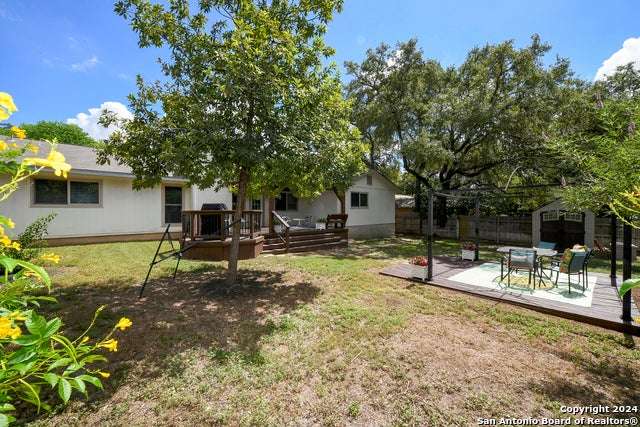 **OPEN HOUSE: 9/28 11am- 4pm & 9/29 1:00 pm-4:00 pm**$4,000 credit toward closing costs, with lender approval. Ask agent for additional details.**This charming Sitterle single-story home truly has it all! Nestled among large, mature trees, it boasts a sprawling back deck complete with a built-in bench and grilling area, plus an additional deck (14x14) with a cozy gazebo frame, and shed (7x7) for storing lawn equipment. Inside, you'll find two generously sized primary bedrooms, each offering its own private retreat. The home features a welcoming split floor plan, with one primary bedroom conveniently located near the kitchen and the other on the opposite side, adjacent to the living area. The 3rd bedroom rounds out the floorplan offering flexibility as a sleeping space or home office and enjoys views to the lush backyard. Enjoy elegant touches like a separate dining space, a warm fireplace, and stylish wood beam in the living room. The home has been carefully maintained. Roof is approximately 1 year old. Hot water heater, water line, and outside faucets (plumbed outside of water softener so it doesn't affect plants) replaced 2020. The HVAC system features UV light, popcorn ceilings were recently removed, and the home freshly painted. Located in the sought-after Thousand Oaks area in Oak Hollow, you're in walking distance of shopping and dining. This home is a must-see-don't miss your chance to make it yours!