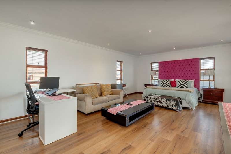 Experience unparalleled luxury and family living in this exquisite freehold property, nestled within one of Midrand's most sought-after estates. This home seamlessly blends sophisticated design with practical spaces, offering an exceptional environment for entertainment, relaxation, and outdoor activities for the whole family. Spacious and Elegant Interiors This magnificent residence boasts 5 spacious bedrooms and 4.5 bathrooms, including two en-suite bathrooms for ultimate privacy and convenience. A dedicated guest toilet is located downstairs. The open-plan layout creates a harmonious flow between the modern kitchen, dining area, lounge, and family TV room, all extending effortlessly onto the patio. The generously sized kitchen is a culinary dream, featuring ample space for a stove, extractor, fridge, and various appliances. It includes a convenient scullery, a breakfast nook, and abundant cupboard space to meet all your storage needs. Enjoy the luxury of having a separate lounge and a dedicated TV room, perfect for memorable family movie nights. All bedrooms are located upstairs, with the massive master bedroom and its en-suite bathroom serving as a true sanctuary – your personal "Home Sweet Home." Outdoor Oasis and Premium Amenities Step outside to discover a meticulously maintained private garden with beautiful lighting, offering a serene escape. The property also features a well-maintained, covered, and heated swimming pool, ensuring year-round enjoyment for family fun, even in winter. For added convenience, there are staff quarters with a toilet and shower. Parking is never an issue with an automated double garage, an additional single garage, and space for four visitors' cars. Exclusive Estate Living Enjoy peace of mind with the estate's top-tier security, including CCTV cameras, 24-hour guarding and response, and day and night security patrols. Residents also have exclusive access to a range of communal amenities, including a clubhouse perfect for hosting private parties, a tennis court, and an additional communal swimming pool. This exceptional property truly offers a lifestyle of comfort, luxury, and security. Ready to experience this beautiful home for yourself? Call Bobby, your Midrand Property Specialist, to schedule an appointment.