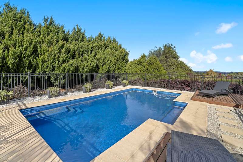 Experience first class family living on a grand scale with over 42 squares of spacious living area spread out over two levels. Superbly located near the Golf Course and within walking distance of St. Pauls Anglican Grammar School. Afforded a picturesque scenic aspect, this well-built and neatly presented home exudes stylish modern internal decor and comes with a versatile floor plan that caters well for the growing family. Boasting 4 double sized bedrooms (opulent main with ensuite and walk in robe), sizeable study/5th bedroom, a total of 3 bathrooms and 3 toilets, 4 separate living areas including expansive open plan family/meals arrangement, sitting/lounge with gas log fire, rear located rumpus room with built in cabinetry and upper-level living room. The custom designed modern kitchen is fitted with quality appliances and features an island bench and breakfast bar with Stone bench top and appliance cupboard. With ducted heating and cooling on both levels plus split systems, the house maintains comfort all year round. The home also has the addition of a 12.3kw solar power system. Relax and entertain under the covered alfresco with decking and adjoining fire pit while overlooking the inviting inground swimming pool with reverse cycle heat pump. The triple garage caters for your vehicle accommodation and provides internal access to the home, plus there is an abundance of additional parking area. Occupying an outstanding and private 5108m² allotment with mature landscaping, this family home ticks all the boxes and is sure to impress the fussiest of buyers. Wanting style and space without the hassles of building your dream home, then inspect this superb offering today and appreciate the quality and class. You won't be disappointed.