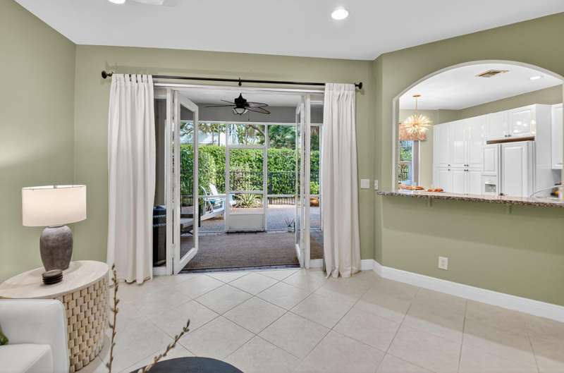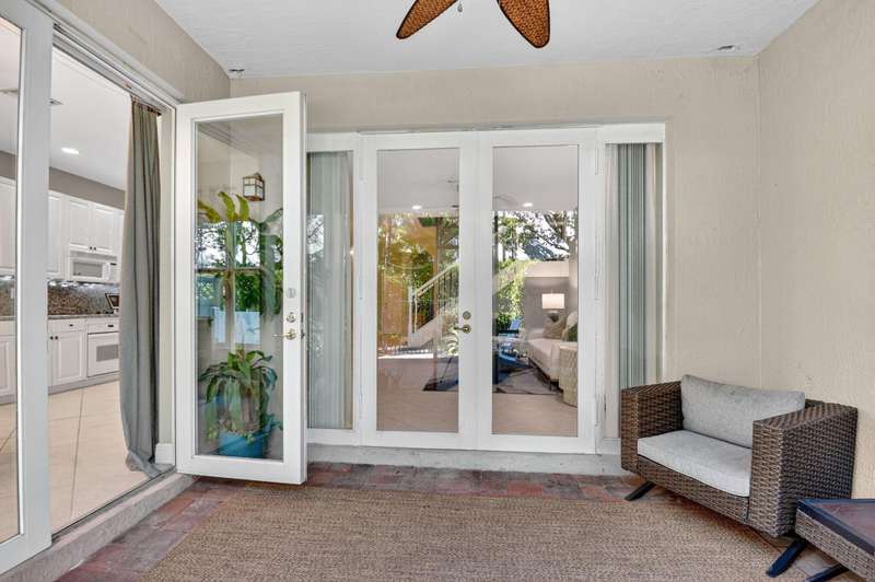 This dreamy, zen-like home offers an unparalled lifestyle, located just steps from the picturesque Intracoastal Waterway with PRIVATE BEACH access & resort style pool! Outstanding features include gleaming white lacquered kitchen cabinets with custom refrigerator panel that blends seamlessly, french doors,a screened lanai to enjoy coastal breezes, plus NEW ROOF & impact glass to provide security in a storm. Relax in the cozy den or use as an office. Enjoy your morning coffee on the private, lush fenced patio. The breathtaking Primary bedroom boasts a soaring ceiling, sitting area, closet the size of a small bedroom, & a bathroom with ''his and hers'' vanities, deep whirlpool tub & separate shower. All this is conveniently located near the shops, restaurants & cultural activities of