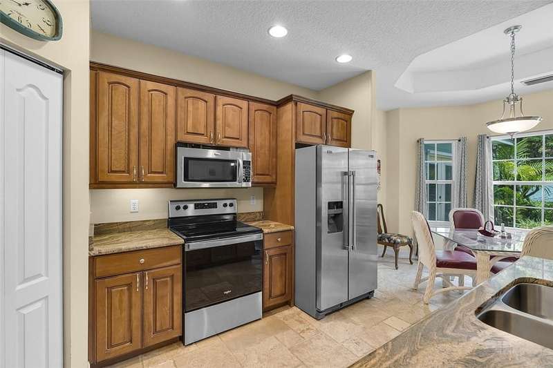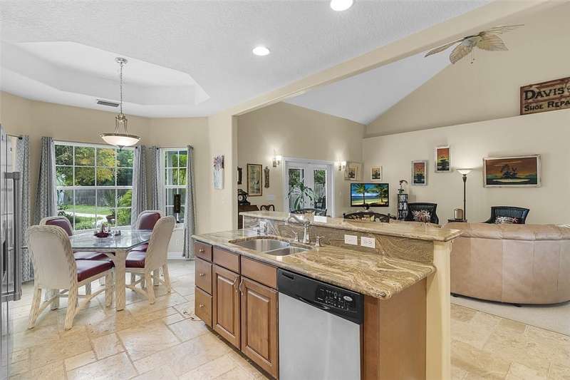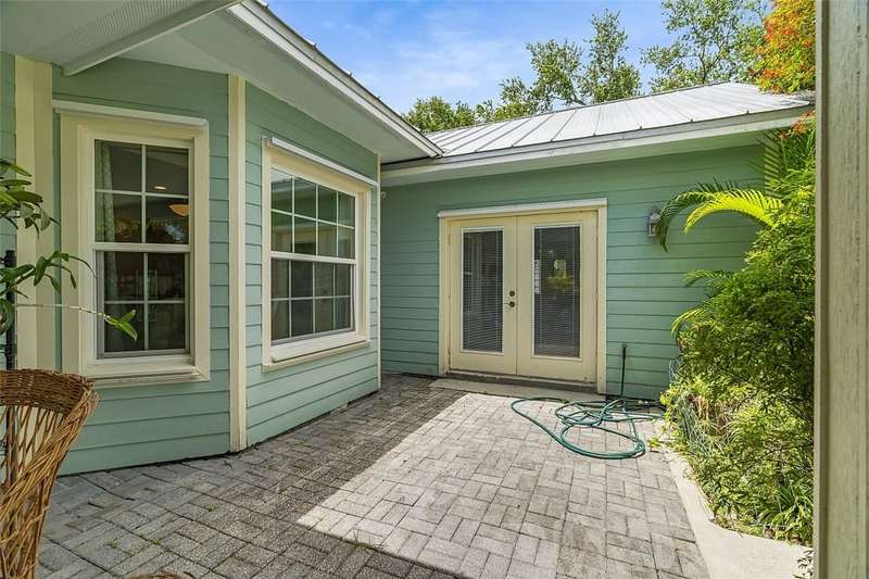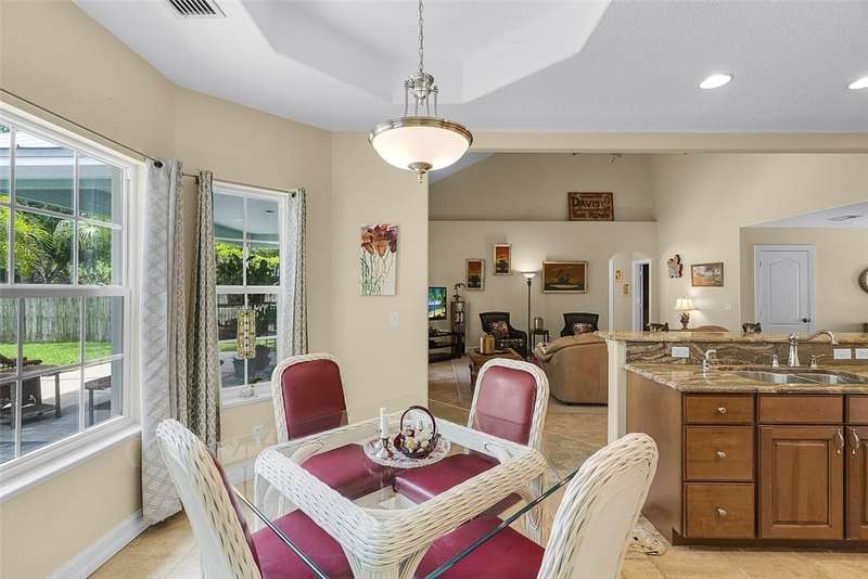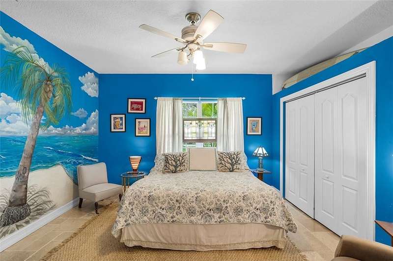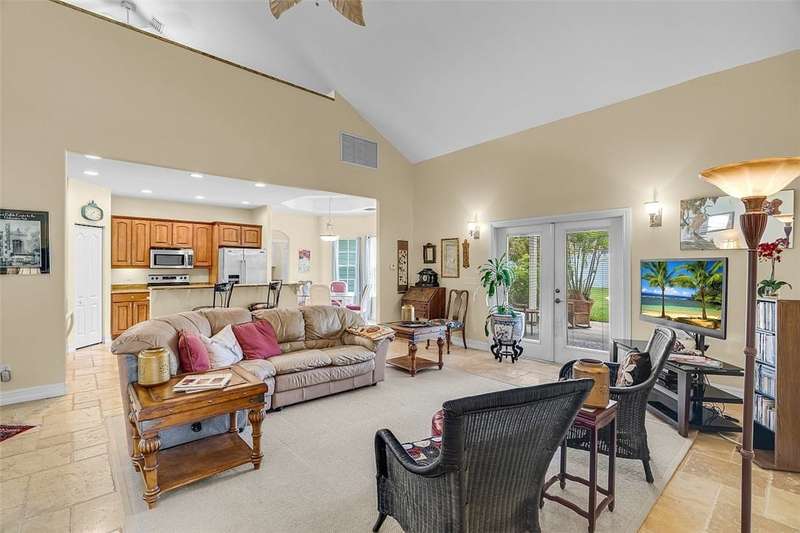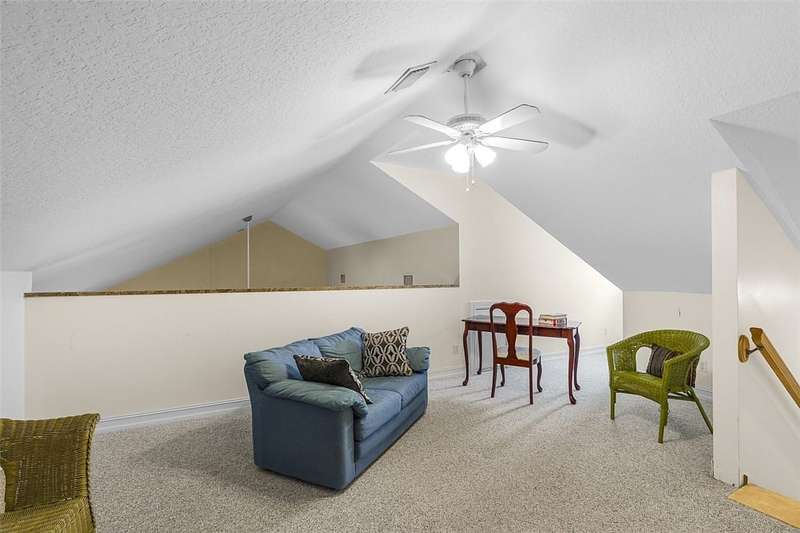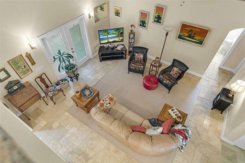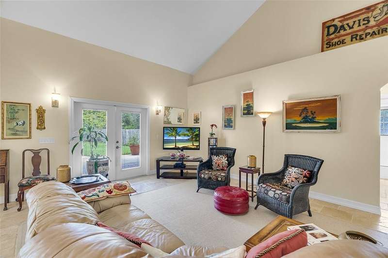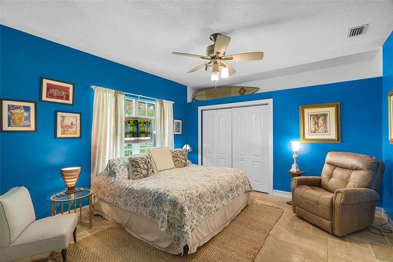 Tucked on nearly an acre in Vero Beach, this CBS home with Hardi-plank siding features an open layout with travertine floors, granite counters, tray/vaulted ceilings, and a spacious upstairs loft. Enjoy the covered front porch or back patio surrounded by lush landscaping. The primary suite boasts a custom closet, en-suite bath, and double doors to the yard. Metal roof, 2-car garage, and a 2,040 sqft bonus workshop with 16-ft ceilings. Zoned A-1. Room sizes are approximate and subject to error.