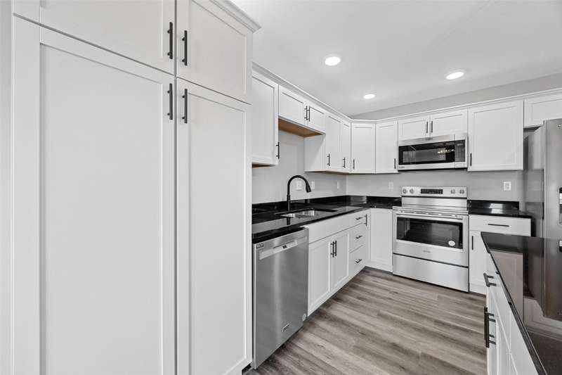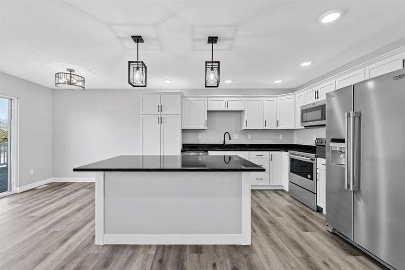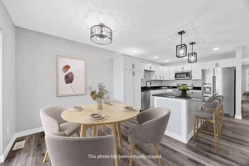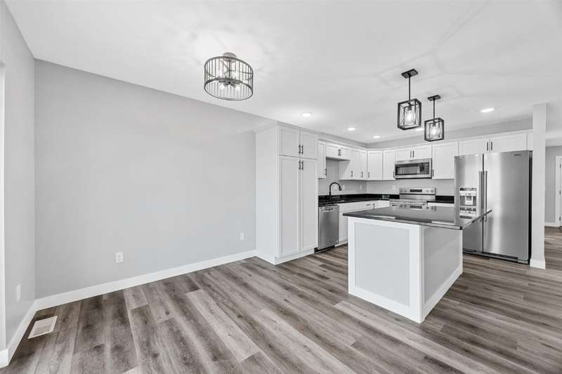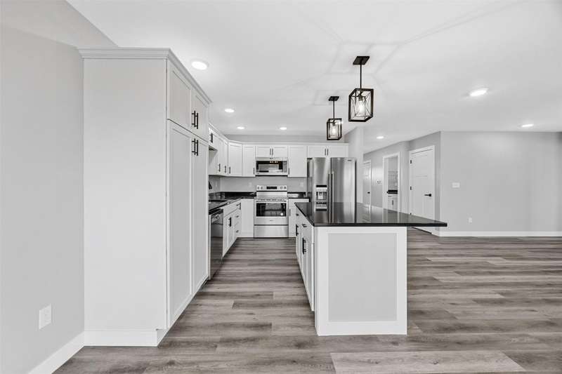 Welcome home to this brand new 2-bedroom, 3-bath condo in the heart of Norway! The main level features an open floor plan with a bright, spacious living room and a stunning modern kitchen showcasing white cabinetry, black granite countertops, a breakfast island, and stainless steel appliances - all included. Enjoy easy access to the deck with a privacy panel right off the dining area, perfect for morning coffee or evening relaxation. The primary suite offers a walk-in closet and private en-suite bath, with a second bedroom and full bathroom rounding out the main floor. The finished walk-out lower level adds even more living space with a large rec room, full bath, and convenient drive-under 3-stall garage. Main-floor laundry and abundant storage complete this move-in-ready home designed for comfort and style!