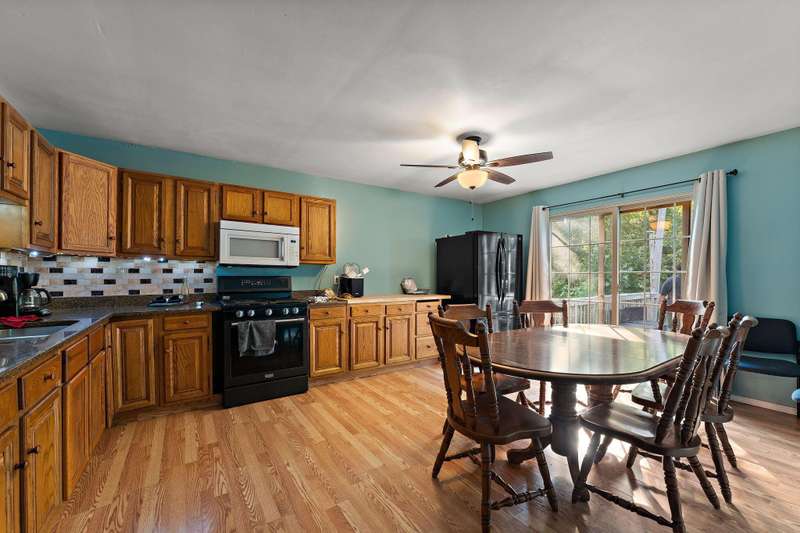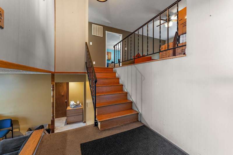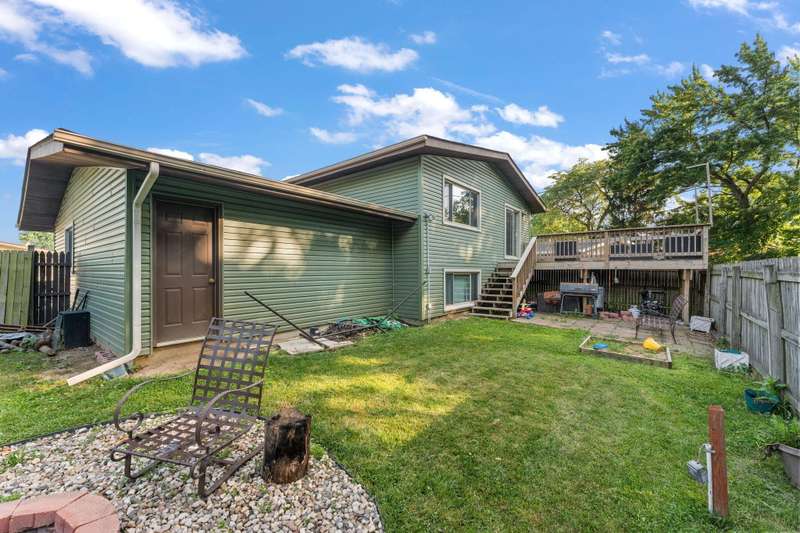 Spacious 4 bed 2 bath bi-level in Salt Creek Valley Commons... upstairs you'll find a large living room with laminate flooring and large windows with views of your fenced in yard & NO BACKYARD NEIGHBORS! Living room opens up to a large country kitchen with ample cabinet & counter space, granite counters, dining area, & sliding doors out a nice sized deck built in 2022! 2 nice sized bedrooms and full bath complete the upstairs. Lower level offers a 2nd living area and unfinished laundry room, storage closets and 2 other bedrooms. Primary bedroom in the lower level boasts private bath and double closets. Main floor features oversized foyer, work out room, and access to the 1 car garage. Outside along with the fenced yard & deck in 2022, the SIDING & ROOF were both replaced in 2024! Don't miss this spacious home with LOADS of potential.