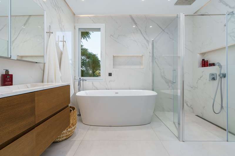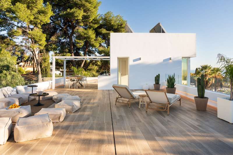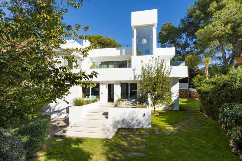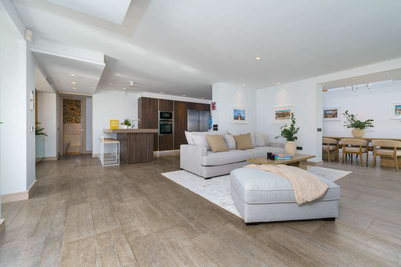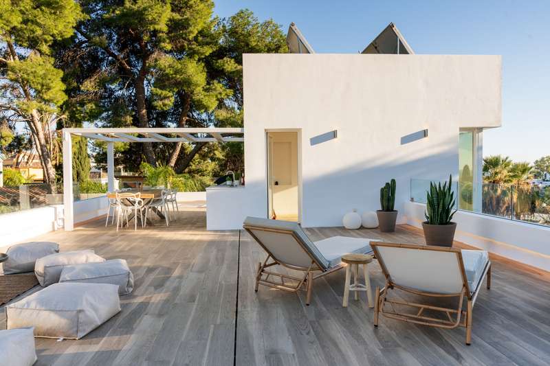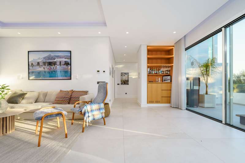 Discover the perfect blend of modern elegance, privacy, and prime location with this newly renovated villa in lower Nueva Andalucía. Nestled in a tranquil yet well-connected neighborhood, this stunning home is just a short stroll from shops, restaurants, and essential services. Originally built in the 1970s, the villa has been meticulously reimagined and expanded to include a second floor, a breathtaking solarium, and a charming guest house with a private entrance. The main house boasts an open-plan ground floor with a spacious living and dining area, a premium fully equipped kitchen, three en-suite bedrooms, and a guest toilet. Upstairs, you’ll find an additional lounge, a guest bedroom with a walk-in closet and en-suite, and a magnificent master suite with a large dressing room and spa-like bathroom. The highlight is the expansive solarium, offering panoramic sea views, luxurious lounge areas, and sun decks—perfect for entertaining. Outside, a heated saltwater pool, jacuzzi, outdoo