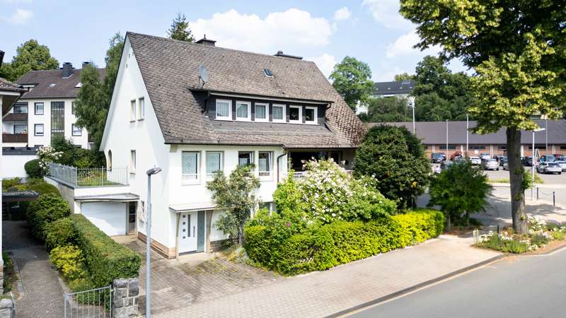 Right in the vibrant heart of the city and yet quiet, a charming and versatile property awaits you: A detached house from 1960 on four floors that is still adapted to the demands of modern life. On the first floor, you are greeted by spacious practice rooms with light-flooded rooms that impress with their functional layout. Whether office or practice, for your own use or for renting out - this area offers a wide range of possible uses and a separate entrance for maximum privacy. The two floors above invite you to feel at home: Two beautiful apartments, each with two bedrooms, a spacious living room, balcony, bathroom and kitchen, offer space for family, friends or guests. The main apartment is particularly noteworthy with its cozy fireplace, which creates a particularly cozy atmosphere on cold days. The high-quality parquet floors lend the rooms an elegant sheen and create a cozy living atmosphere. The house scores with its extremely central location: shopping facilities, cafés and restaurants are right on the doorstep, making everyday life quick and easy. And yet - behind the house you will find an ingrown, green garden that offers peace and relaxation. Here you can unwind, relax or spend sociable hours with friends. With a total living space of 185 m² on the two upper levels and 61 m² of usable space in the practice rooms as well as a plot of 507 m², this house offers everything your heart desires - a harmonious combination of modern living comfort, practical usability and an idyllic garden oasis. A home that inspires and delights! Curious to find out more? We would be happy to show you the property in person, but please understand that we can only conduct viewings with a current proof of financing. If you do not have a current certificate, please do not hesitate to contact us.