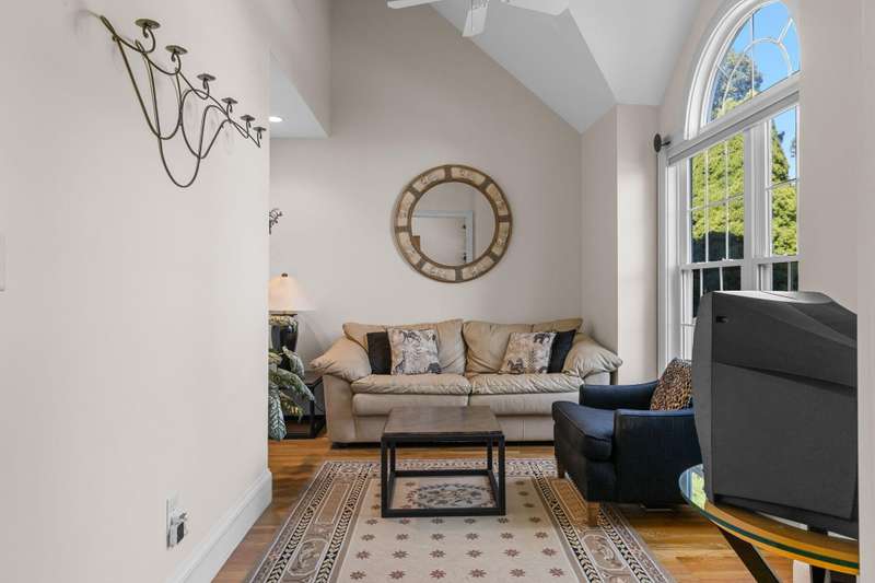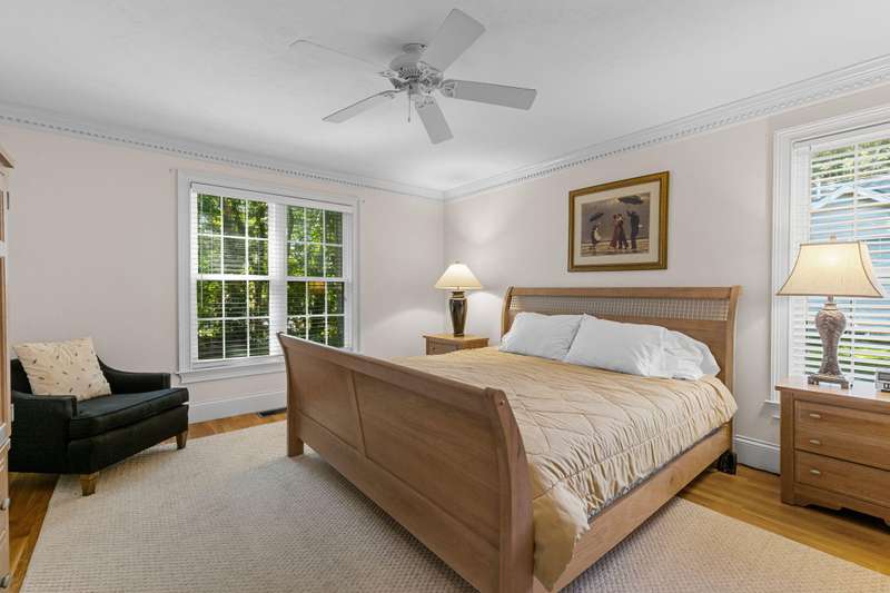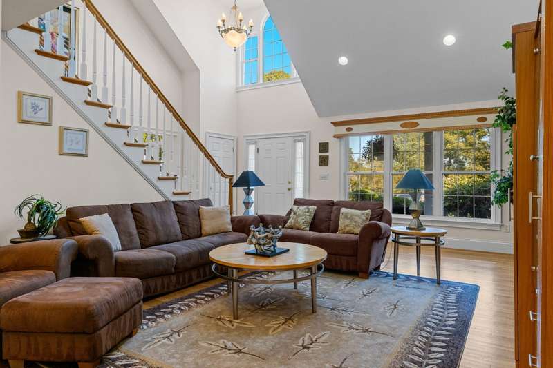 Imagine a beautifully designed home just across the street from Long Pond, offering rights to a private neighborhood beach, for swimming and kayaking. There are 2 moorings which are rotated among users in the neighborhood. This inviting home is filled with natural light, creating a welcoming atmosphere. The first floor features an open layout, including the primary bedroom suite & the laundry room, making everyday living effortless. The living and dining areas flow seamlessly into the well-appointed kitchen, ideal for entertaining. A three-season porch extends the living space, allowing you to enjoy the serene surroundings longer. The second floor boasts two large bedrooms, perfect for family or guests, along with a full bath. A sizable bonus room offers additional living space, which can be transformed into an office or family room. Outside, the proximity to Long Pond invites outdoor adventures, and the nearby bike path encourages leisurely rides.