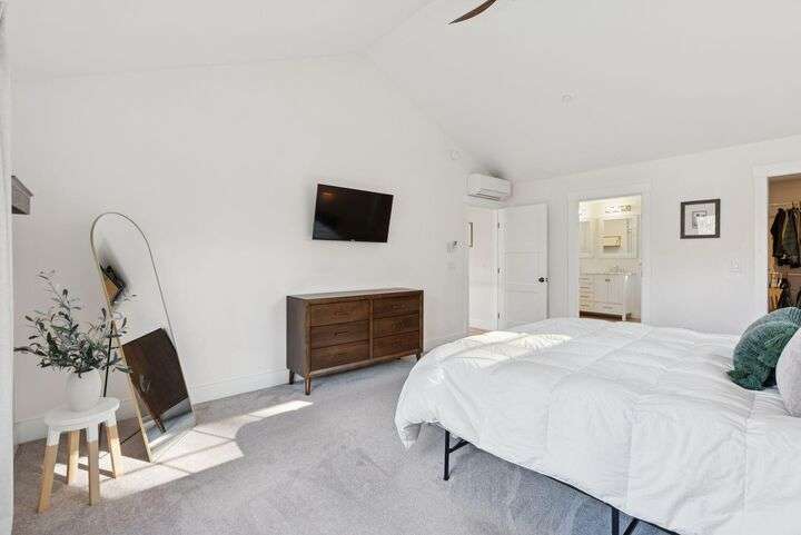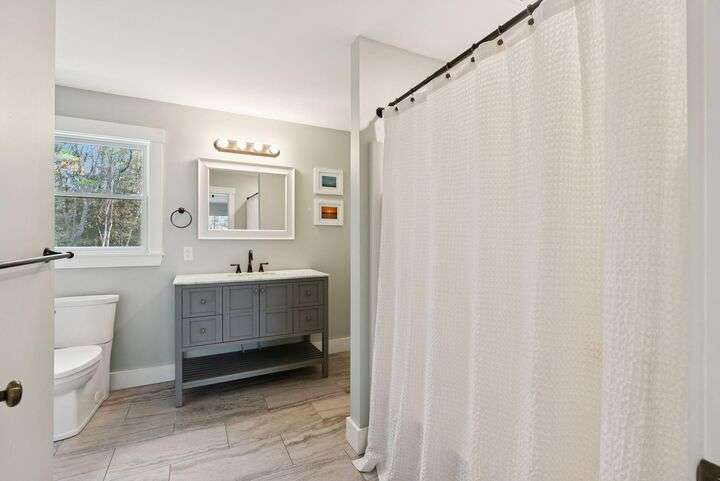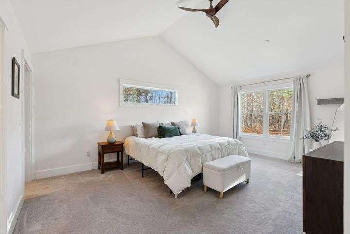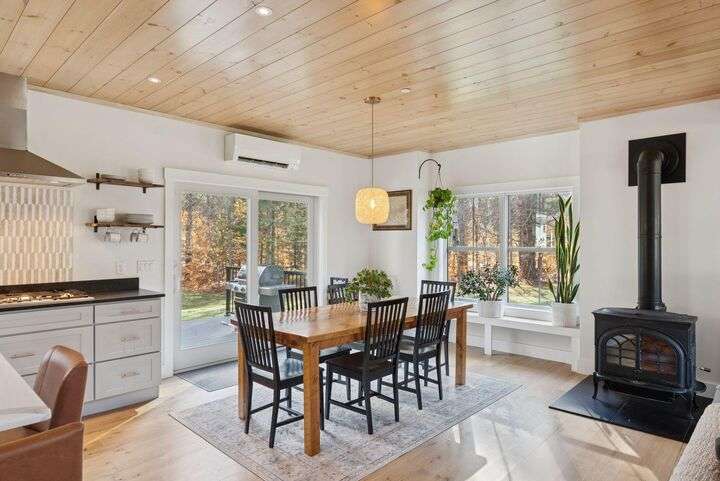 This stunning home is set on a beautiful double lot totalling 4.5 acres, offering exceptional privacy, peaceful natural surroundings, and ample room to expand. The home features a high-end custom kitchen with quality cabinetry, stone countertops, and a large center island perfect for cooking and gathering. Gorgeous white oak flooring extends throughout the main living areas, leading to a spacious walk-in pantry and a dedicated office. The living room is highlighted by soaring vaulted ceilings and expansive windows that fill the space with natural light. Three well appointed bedrooms include a beautiful primary suite with generous closet space and a calming, elevated feel. In addition to the three bedrooms the home offers two additional rooms that can easily serve as guest spaces, playrooms, workout areas, or flex rooms to suit anyones needs. A wood stove and multiple heat pumps ensure year-round comfort and efficiency. The large, dry basement offers excellent potential for additional living space, with high ceilings and flexible layout options. The 30x30 oversized two-car garage provides abundant space for vehicles, storage, hobbies, or a workshop an ideal addition to this private and thoughtfully designed property.