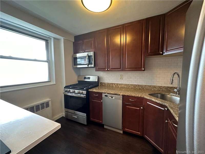 Centrally located, this freshly painted, bright and updated unit close to downtown and shops is a great find! A balcony, generous closet space, brand new kitchen appliances, bathroom vanity, lighting, and laminate floors throughout kitchen and living room, and like new carpeting in both bedrooms will make you feel right at home while being only minutes from all Stamford has to offer. This beautiful complex boasts 24-hour security, a pool, laundry room, and a gym. Close to I-95 and Stamford Train Station. Pets under 40 lbs are allowed for an additional fee. Great credit and references a must. 1 parking spot is included, a second spot may be available for an additional fee.