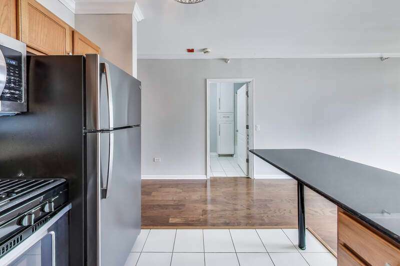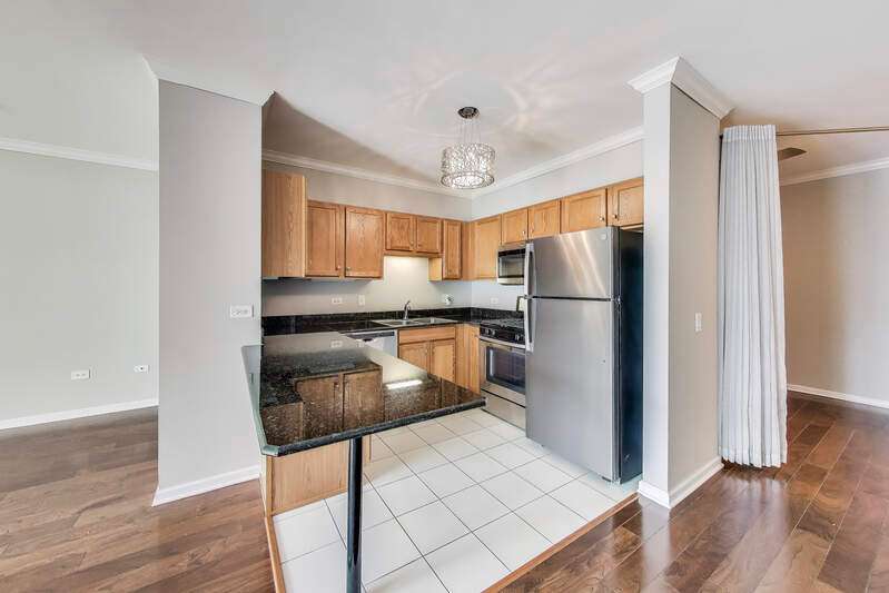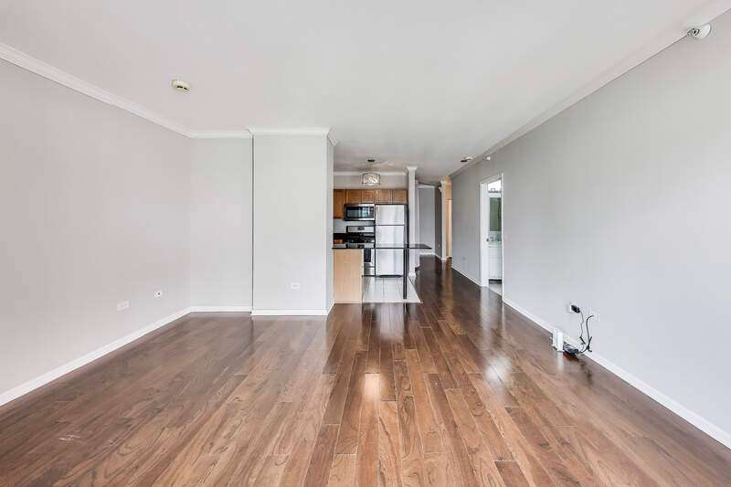 Stylish and move-in ready, this junior 1-bed/1-bath home offers an oversized private balcony with sweeping east-facing skyline views. Inside, you'll find hardwood floors throughout, custom crown molding, an open layout, and abundant closet space. The updated kitchen features 42" wood cabinetry, granite countertops, a breakfast bar, and newer (2019) stainless-steel appliances. A spacious convertible bedroom area includes a custom walk-in closet, while the upgraded bath boasts a modern vanity, custom linen closet, and contemporary lighting. Additional highlights include fresh paint, solid-core wood doors, designer lighting, and a full-size in-unit washer/dryer. Heat, AC, gas, and cable are all covered in the rent. Park Alexandria offers full amenities: 24-hour door staff, fitness center, bike room, dog run, landscaped garden/sun deck, party room, on-site management and engineer, plus fully furnished guest suites. Prime West Loop location steps to Whole Foods, Mariano's, Union Station, Ogilvie, Greektown, Restaurant Row, shopping, nightlife, parks, and more!