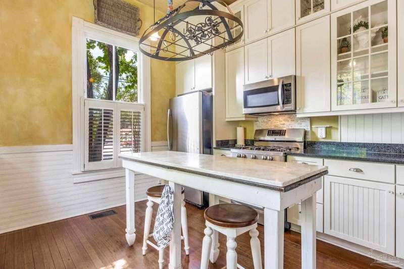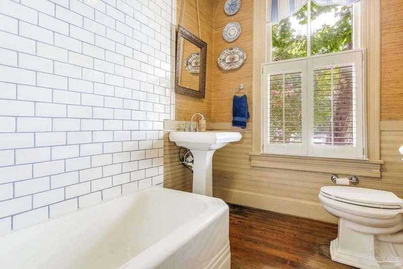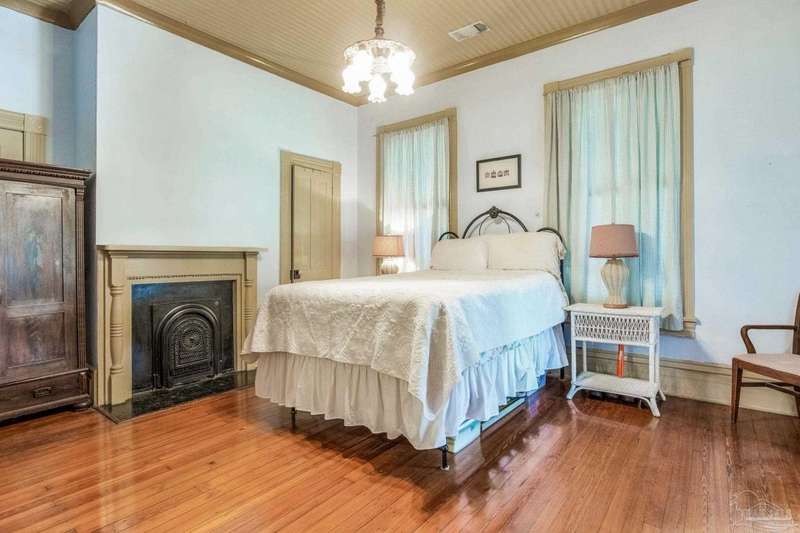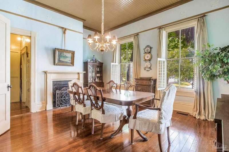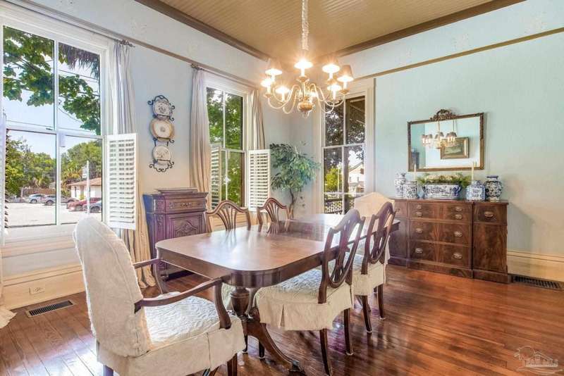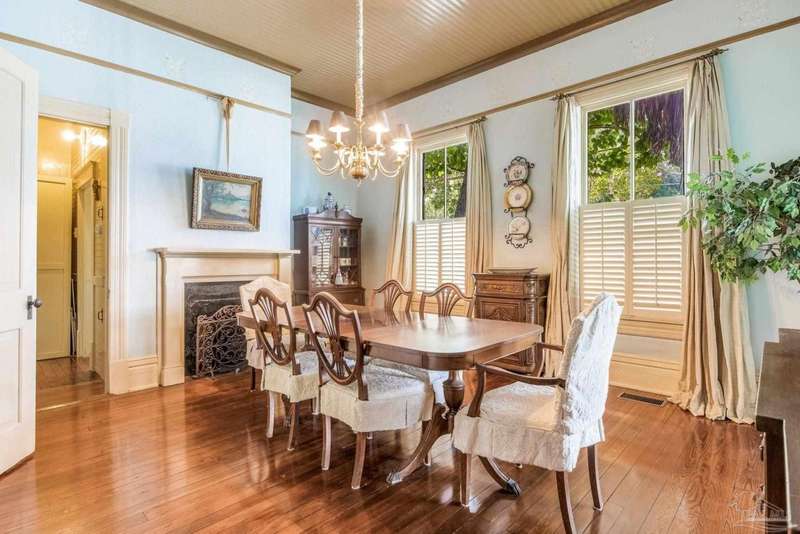 HAVE YOU EVER DREAMED OF LIVING IN A HISTORIC HOME IN THE PRESTIGIOUS NORTH HILL? THE WAIT IS OVER! WELCOME TO 1017 N PALAFOX STREET, A TIMELESS BEAUTY ON A CORNER LOT IN ONE OF PENSACOLA'S MOST CHERISHED NEIGHBORHOODS. SITUATED ALONG A QUAINT ROAD ONCE TRAVELED BY HORSE AND BUGGY, THIS HOME WELCOMES YOU WITH A COVERED FRONT PORCH, PERFECT FOR SIPPING YOUR MORNING COFFEE OR ENJOYING A RELAXING SWING. STEP INSIDE AND BE SWEPT AWAY BY SOARING 11-FOOT CEILINGS, GLEAMING ORIGINAL HARDWOOD FLOORS, AND SIX (SEALED) FIREPLACES, EACH ADDING CHARACTER TO THE LIVING PARLORS, DINING ROOM, AND BEDROOMS. ONE FIREPLACE EVEN FEATURES A TILED SURROUND WITH DOGS, A TOUCHING NOD TO A FORMER OWNER WHO LOVINGLY RAISED HUNTING DOGS HERE. GRAPE VINE ACCENTS ON SELECT DOORWAYS CELEBRATE ANOTHER CHAPTER OF THE HOME'S STORY, WHEN A BACKYARD VINEYARD ONCE FLOURISHED. THE KITCHEN IS TUCKED QUIETLY AT THE BACK OF THE HOME, OFFERING THE IDEAL SPACE TO ENTERTAIN WHILE KEEPING THE MESS OUT OF SIGHT AND OUT OF MIND. IT BOASTS CUSTOM WHITE CABINETRY, GRANITE COUNTERTOPS, STAINLESS STEEL APPLIANCES, A GAS STOVE, AND A FARMHOUSE SINK OVERLOOKING THE PRIVATE BACKYARD. UPSTAIRS, THE PRIMARY SUITE IS SPACIOUS, COMPLETE WITH A COZY FIREPLACE, HARDWOOD FLOORS, AND ROOM FOR A KING-SIZED BED. THE ENSUITE BATHROOM OFFERS DOUBLE PEDESTAL SINKS, A LARGE TILED WALK-IN SHOWER, AND SPACE FOR YOUR MORNING ROUTINE. ANOTHER FULL UPSTAIRS BATH FEATURES A TUB/SHOWER COMBO AND SINGLE PEDESTAL SINK, PERFECTLY POSITIONED TO SERVE THE ADDITIONAL UPSTAIRS BEDROOMS. EACH OF THE BEDROOMS INCLUDES A FIREPLACE AND CLOSET, WHILE THE FOURTH BEDROOM (WITHOUT A CLOSET) PROVIDES A VERSATILE SPACE FOR A GUEST ROOM OR OFFICE. THE SUNROOM, ONCE THE ORIGINAL KITCHEN, IS NOW THE PERFECT SPOT FOR BREAKFAST OR QUIET MOMENTS WITH A BOOK. DOWNSTAIRS, A THIRD FULL BATH FEATURES CHARMING CUSTOM WALLPAPER AND A TUB/SHOWER COMBO. A LAUNDRY ROOM ON THE SECOND FLOOR OFFERS CONVENIENCE AND BONUS STORAGE SPACE. EXPERIENCE IT FOR YOURSELF!