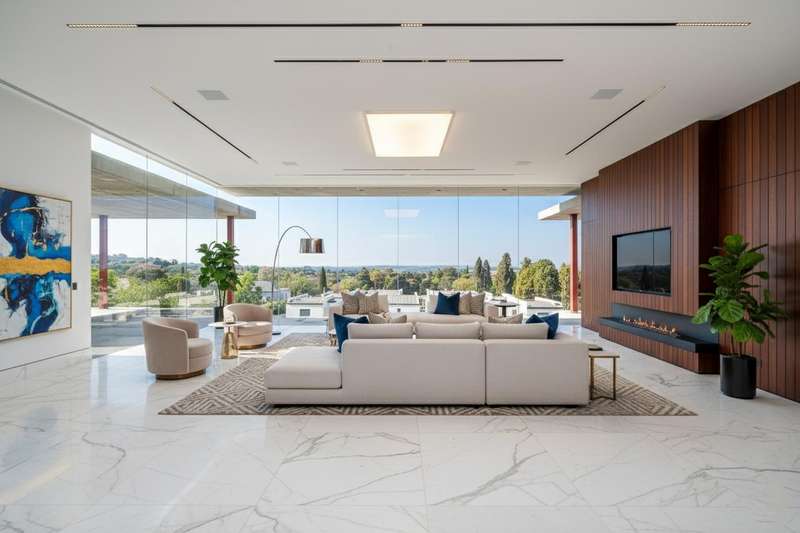 Rising from one of Bryanston?ÇÖs most exclusive and boomed-off enclaves, this architectural masterpiece stands proudly on a 4,084sqm fully walled stand, offering an unrivalled sense of privacy and scale. With a total building area of 2,441sqm, this visionary residence redefines modern luxury through bold geometry, vast glass fa?ºades, and a commanding architectural form. Every element - from the floating concrete slabs and cantilevered walkways to the double-volume glass entrance framed in steel - has been designed to impress. Expansive proportions flow seamlessly across three magnificent levels, each capturing breathtaking panoramic views over the lush Bryanston treetops. This is more than just a property - it?ÇÖs an opportunity to bring your vision to life. Some of the images shown are architectural renders, showcasing the extraordinary potential of what this home can become once completed. The scale, size, and layout set the foundation for a world-class mega-home, with interiors that can be finished to your exact taste and standard. Surrounded by manicured lawns and full boundary walls, this structure represents immense value, with the current replacement cost of what?ÇÖs been built already exceeding the asking price. A true architectural canvas awaiting completion, this is your chance to craft one of Bryanston?ÇÖs most iconic residences - where design, opportunity, and potential converge.