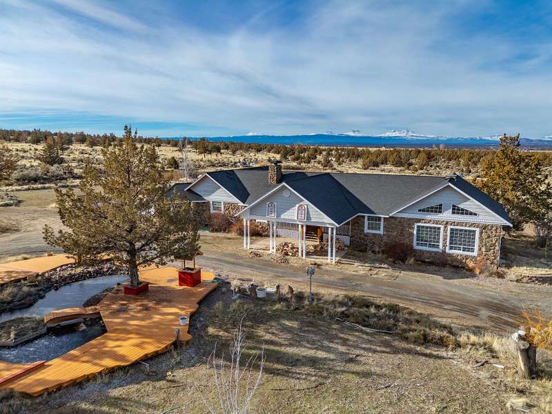Short sale Appraisal from bank $875. .Private retreat in Powell Butte! This 4-bedroom 2 bath 3,556 sq ft custom-built, one owner home sits on 4.75 acres on a quiet dead-end road, offering stunning Cascade Mtn views & breathtaking sunsets! Circular driveway entrance features a center pond with a wrap around deck. Gorgeous vaulted wooded ceilings, with exposed beams and solid wood doors & windows throughout. Gourmet kitchen boasts custom cabinetry, unique title & wood floors, double ovens and a copper stove hood over the center cooktop island with breakfast bar. Spacious primary suite includes a jetted Jacuzzi tub, bidet, dual vanities, and sliding door to back deck. Large solarium provides natural light to enjoy year round. Solar hot water. Home needs some maintenance to bring back the natural beauty but the views are there to stay. Large 24X36 shop w/12' lean to on each side. No CCR or HOAs. Minutes from airport and Brasada golf course. Horse property. In Probate