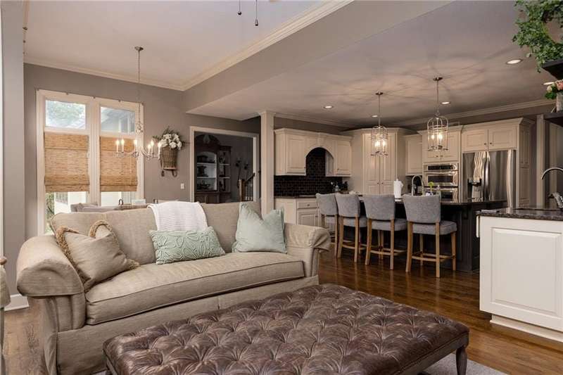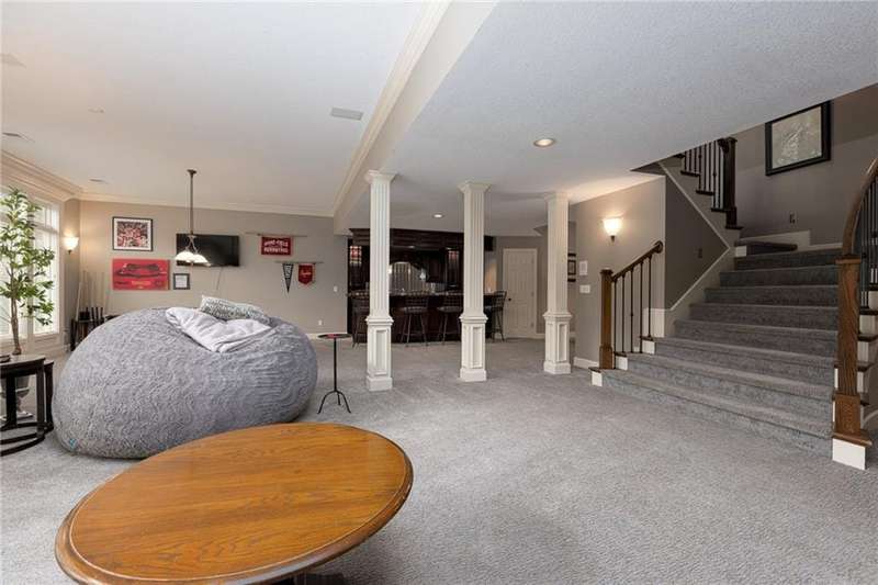 Beautiful 1.5 Story Home- This 4 bedroom, 6 bathroom home with a 3 car garage blends luxury and practicality. The spacious kitchen offers a large island, granite countertops, hardwood floors, and a gas oven & stove, opening to an office nook for convenience. Each bedroom features its own private bath, with the master suite boasting heated bathroom floors with a huge walk-in shower. The hearth room with fireplace is perfect for gathering, while built-ins and custom blinds add style and function. The finished basement includes a full bar, lots of areas to entertain, catch a game, or host a party, plus a SUSPENDED GARAGE for extra storage. Lower level also includes a bonus room that could be converted to a 5th bedroom, workout room, or 2nd office. This home has many unique touches and interesting details that you won't find in other homes, all set on a large, meticulously landscaped private lot. Home's exterior oozes curb appeal and invites you in. Thoughtful touches like dual staircase, a doggie bath in the laundry room, and oversized bedrooms complete this exceptional home. Picture yourself in this elegant home and popular community!
