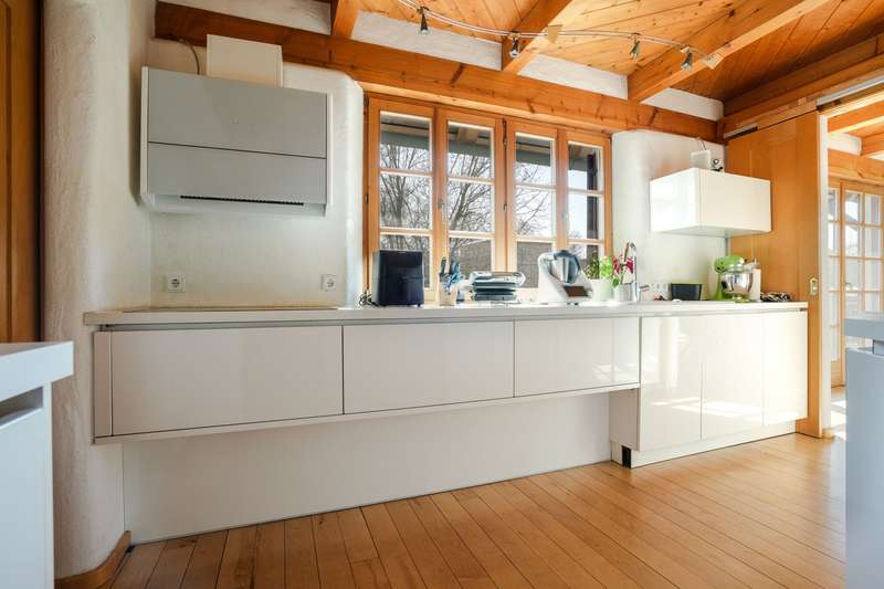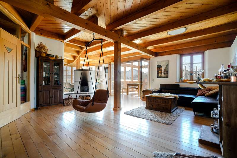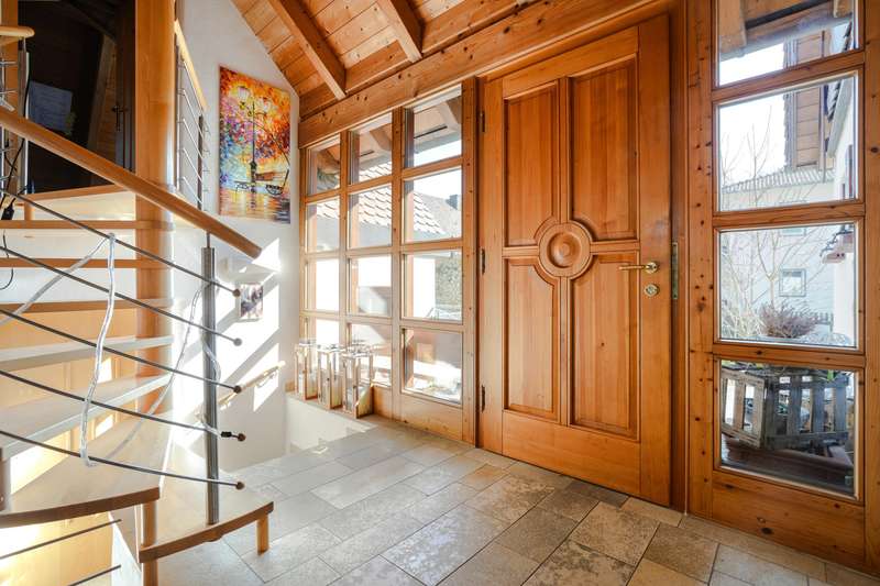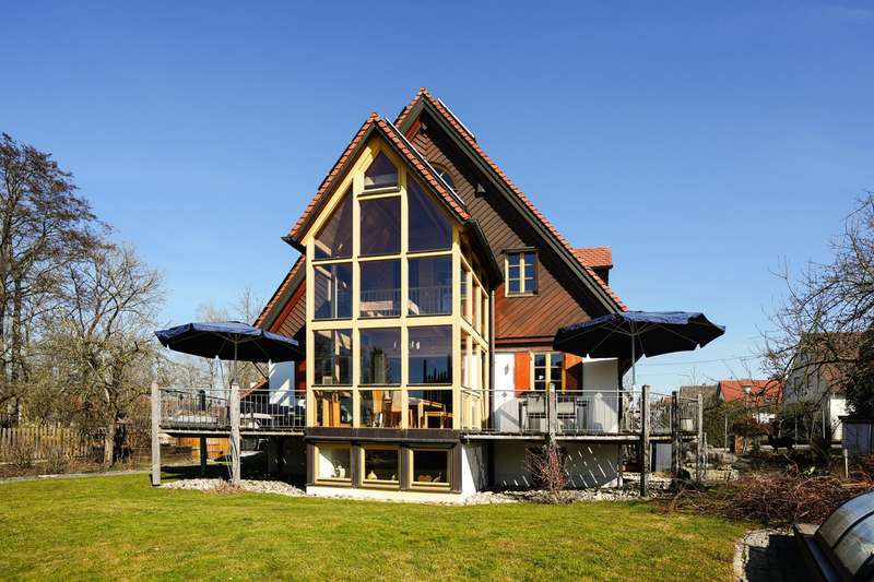 This exceptional property combines modern living comfort, sustainable technology and exclusive living at the highest level. Situated on a spacious plot, this property offers a perfect balance of elegance, functionality and an incomparable living experience - ideal for discerning buyers who value quality and individuality. In a sought-after residential area of Biberbach, the house impresses with its spacious, well thought-out room layout. The spacious living area creates an open and inviting ambience. The area with a full basement considerably expands the available space and, in addition to versatile areas, also includes a separate guest room with its own bathroom - an ideal solution for visitors or as a private retreat. The light-flooded living area forms the heart of the house and impresses with a characterful wood-burning stove that creates a cozy atmosphere. High-quality floorboards and wooden floors underline the stylish charm and ensure a pleasant living experience. Directly adjacent, the impressive conservatory with gallery and generous glazing opens up a unique view of the natural surroundings and enables a living experience close to nature at any time of year. This property also sets standards in terms of sustainability: a state-of-the-art heat pump in combination with a photovoltaic and solar system ensures a future-oriented, energy-efficient heating solution and reduces operating costs to a minimum. The exclusive outdoor area transforms the property into a private oasis of well-being. A refreshing pool, a Finnish sauna, a stylish party hut and a fully equipped outdoor kitchen offer perfect conditions for relaxing and socializing in your own home. This property combines upscale living comfort with state-of-the-art technology and unique amenities - a rare opportunity for those looking for something special.