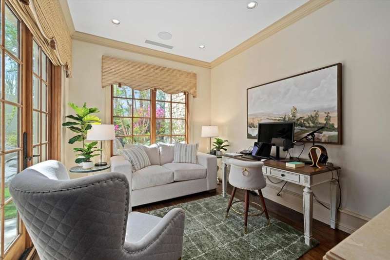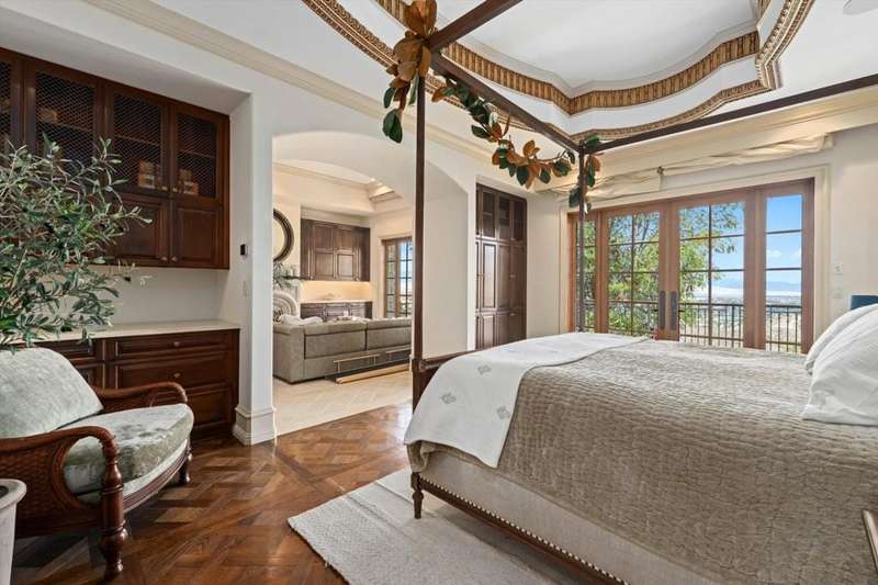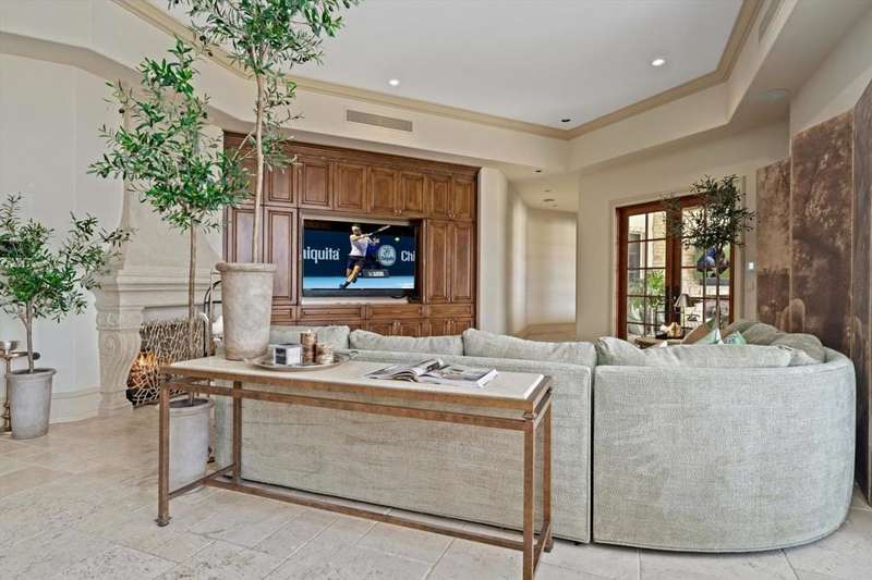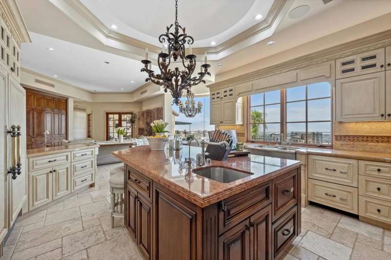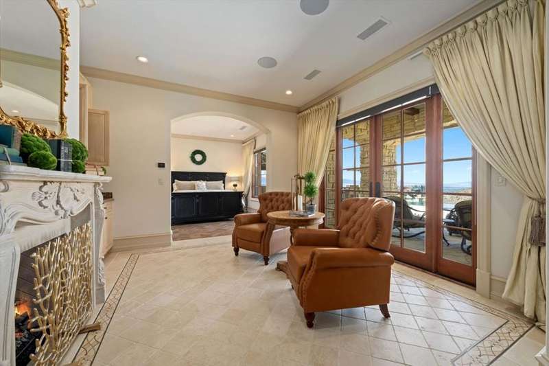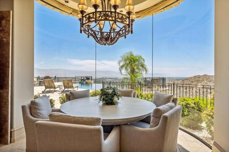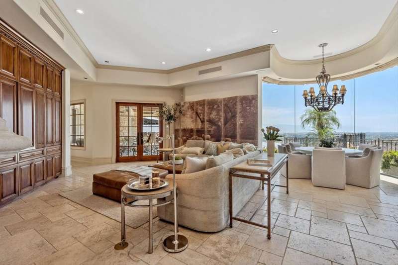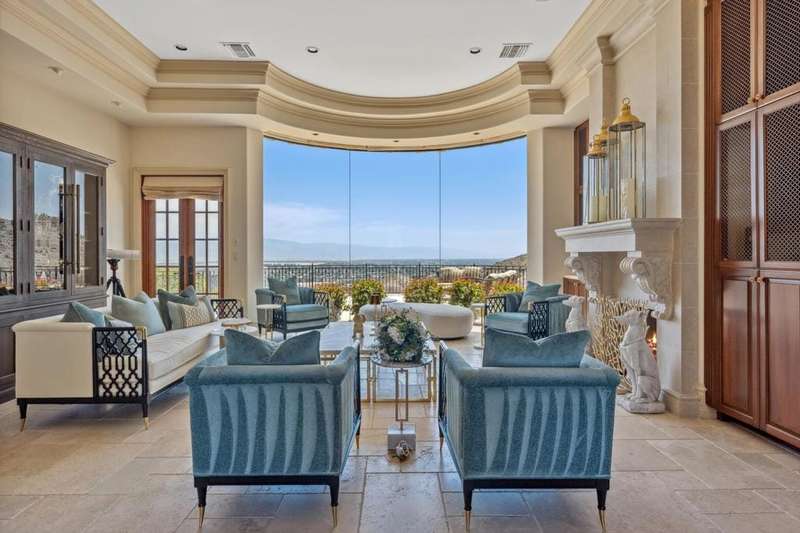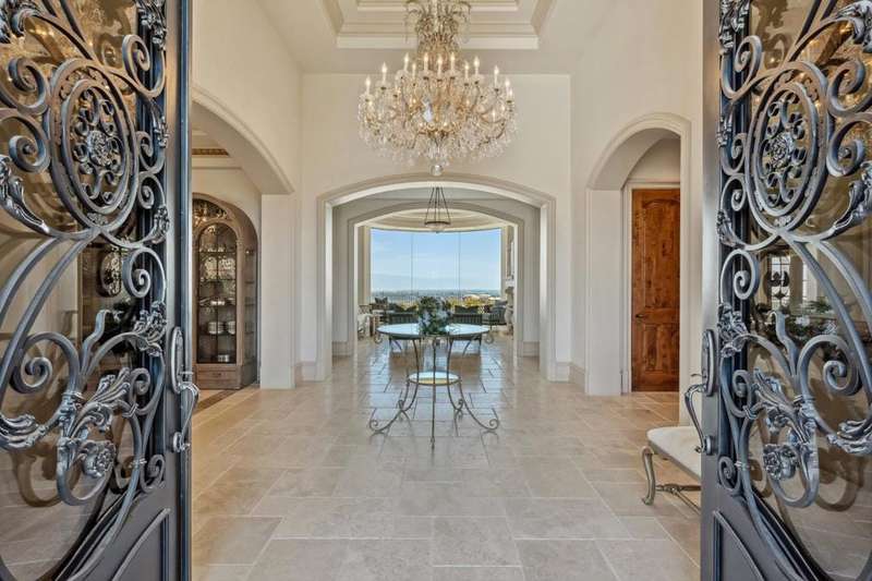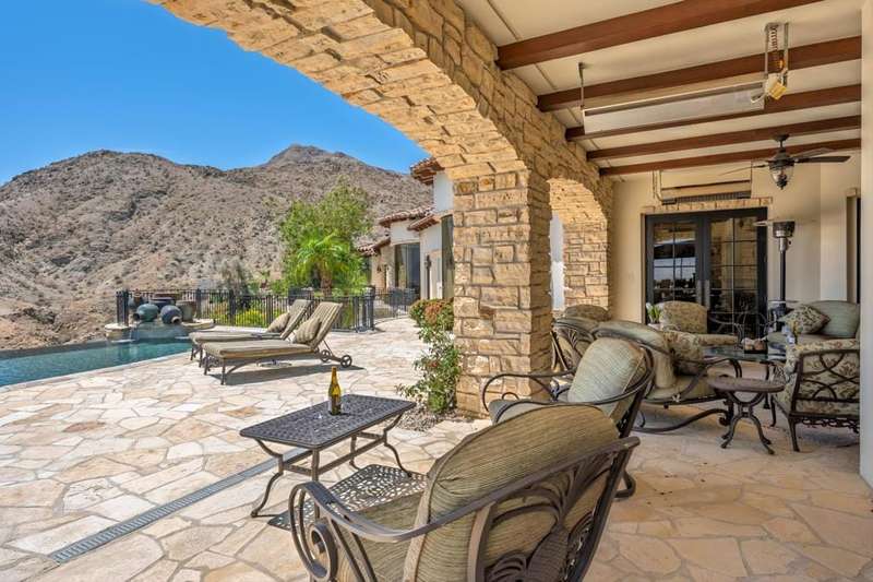 Nestled at the pinnacle of a private cul-de-sac within a prestigious 24-hour guard-gated, Mirada Estates. This extraordinary residence offers an unmatched blend of luxury, privacy, and panoramic mountain-to-valley views. Spanning over 6,500 square feet of thoughtfully curated living space, featuring 2 primary suites, 2 guest, and 8 bathrooms. Upon entry through grand double glass doors, an elegant living room with floor-to-ceiling glass walls welcomes you with sweeping vistas. Sophisticated architectural details include custom coffered ceilings and honed travertine flooring throughout. The sprawling layout is enhanced by 6 fireplaces, and 2 dedicated offices. A gourmet kitchen appointed with Wolf appliances, a Sub-Zero refrigerator, dual dishwashers, ice maker, beverage fridge, 3 oversized wine coolers, and a walk-in pantry caters to every culinary need. Over $500,000 in recent upgrades, including a Control4 home automation system with Arkanis WIFI and network points, external camera system, an audio/video systems inside and out, the list goes on. The experience continues to an outdoor covered veranda, a built-in fireplace,TV, all overlooking the infinity-edge pool and an open-air kitchen & bar. Complete with a half bath and serene Koi pond, all creating a resort-inspired backdrop of tranquility. Residents enjoy privileged access to the Ritz-Carlton amenities, offering luxury living within a secluded mountaintop sanctuary.