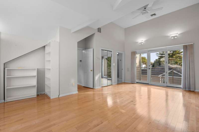 Welcome to this rare four-level townhouse condo in the heart of New Haven's sought-after East Rock neighborhood, part of the coveted Worthington Hooker school district. Tucked into a charming courtyard setting, this spacious home offers a unique opportunity to enjoy city living with plenty of room to grow. From the front entry, you'll immediately notice the striking view of East Rock. The main level features a light-filled living room, a half bathroom, and a functional kitchen. Upstairs on the second level are two generously sized bedrooms and a full bathroom. The third level is dedicated to the primary suite, complete with a large bedroom layout, walk-in closet, and private full bath. Both the second and third levels enjoy private balconies with sweeping views of the New Haven skyline, making them perfect spots to relax or entertain. Additional highlights include newly installed hardwood floors throughout, a brand-new roof recently completed by the management company, and private off-street parking in the rear. While the home does require some updates, it offers a solid foundation and excellent potential for customization. This townhouse-style condo is a rare find in New Haven-combining space, parking, and location just minutes from downtown, Yale, and the shops and restaurants of East Rock. With its generous layout, desirable school district, and unbeatable neighborhood setting, this is a home you won't want to miss.