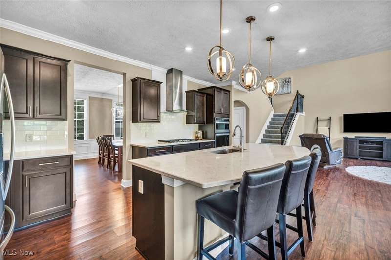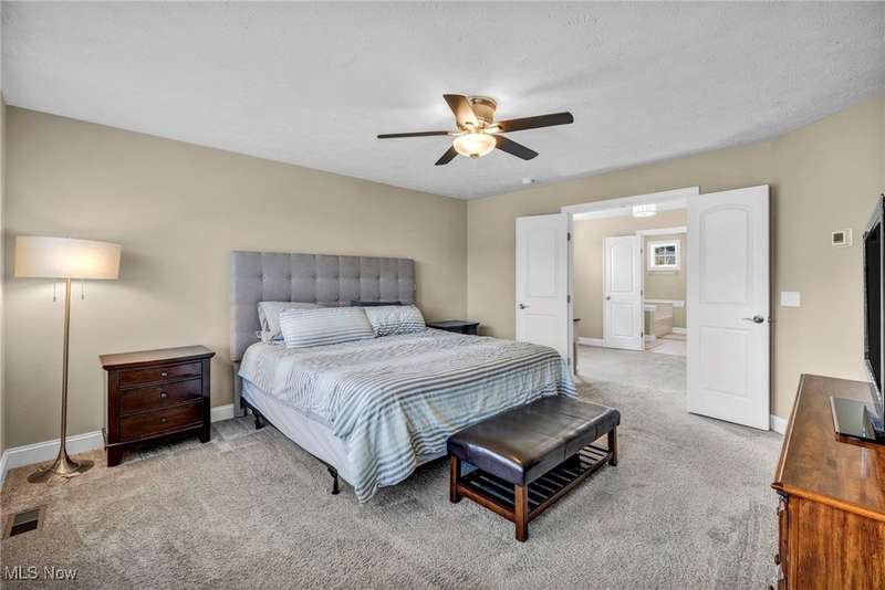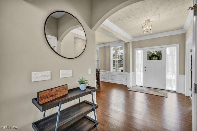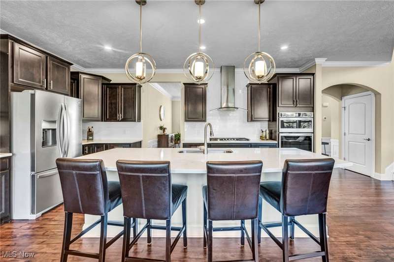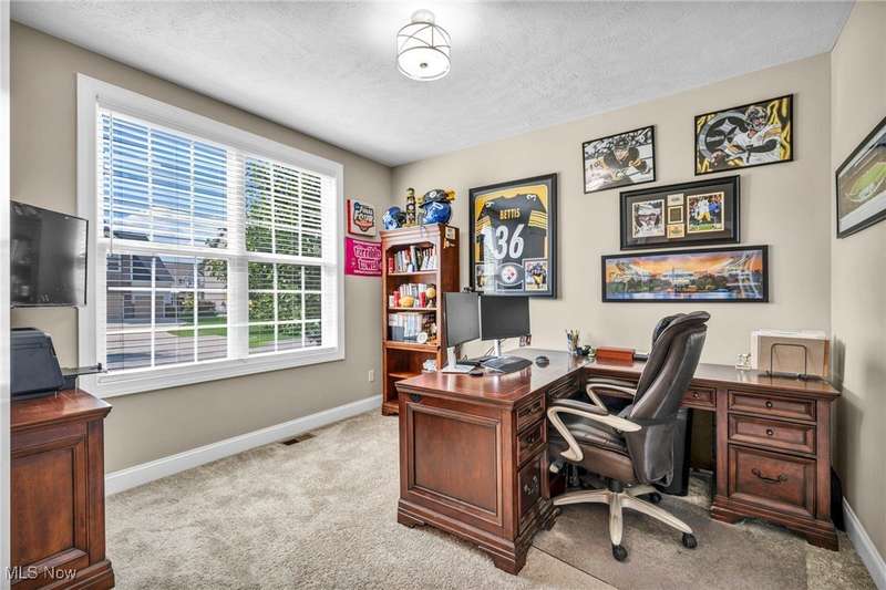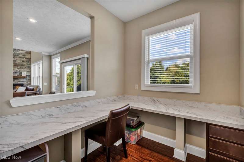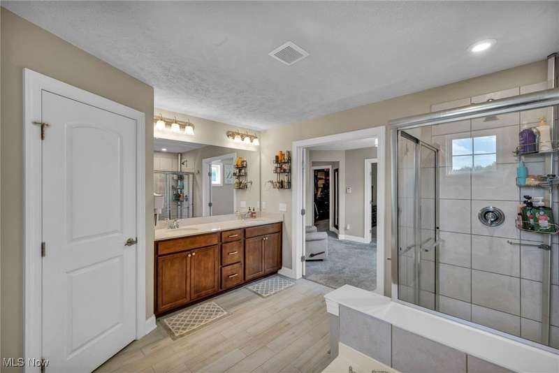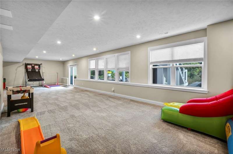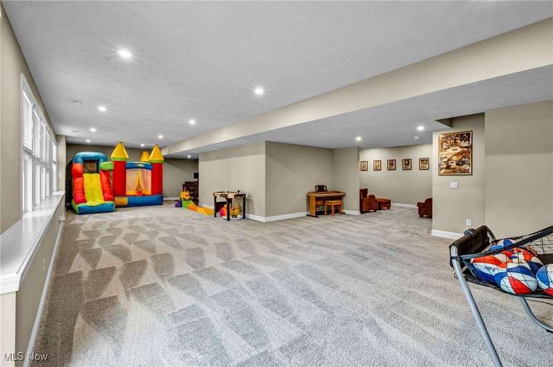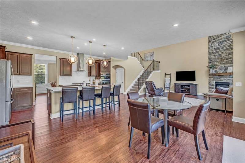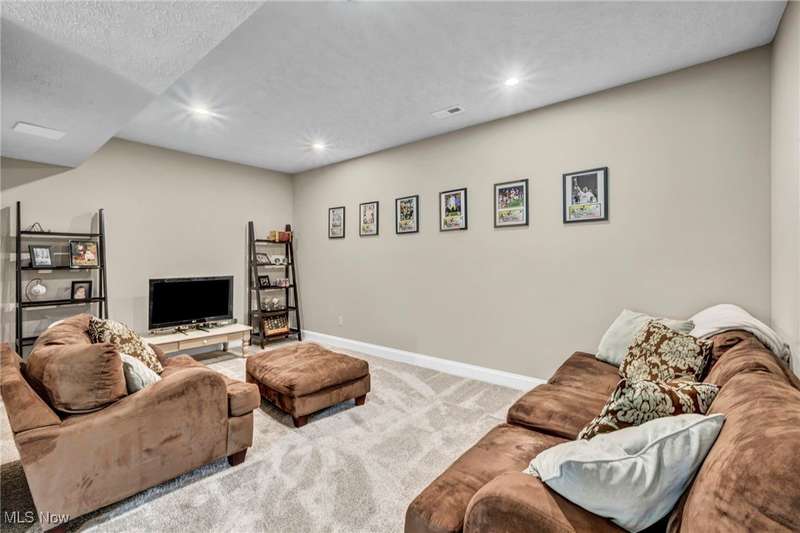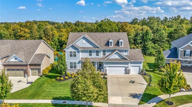 Welcome to this phenomenal 4-bedroom, 3.5-bathroom home that blends timeless elegance with modern comfort. The living room is the heart of the home, featuring a striking fireplace that soars to the vaulted ceiling and a wall of windows that frames the outdoors beautifully. The gourmet kitchen boasts a massive island with breakfast bar, quartz countertops, a spacious eat-in area, and a convenient planning center. A formal dining room provides the perfect setting for gatherings, while the first-floor office is ideal for work or study. Everyday functionality shines with a large mudroom and closet, plus a first-floor laundry room with sink. Upstairs, retreat to the luxurious primary suite, which offers a separate dressing room, spa-like bathroom with a glass shower, soaking tub, water closet, and dual vanities. The walk-in closet with a custom organization system completes the suite. Each additional bedroom features a walk-in closet and ceiling fan, with two bedrooms sharing a Jack-and-Jill bath and another enjoying its own nearby full bath. All upper level bathrooms are complete with quartz countertops and undermount sinks. The upper level also includes a spacious loft area perfect for relaxation or play. The walkout basement is an entertainer's dream with a media room, expansive open space, and two large storage rooms. Step outside to enjoy the incredible outdoor living: covered lounge area with a warm wood ceiling, a massive stone fire pit, dining area, and stamped concrete patio. Walk up the Trex deck toward the upper level to the open deck with a sliding door to the eat-in kitchen and views of mature trees. The property is set on a large, private lot backing to a nature preserve. Additional features include a covered front porch, a 3-car garage, basketball hoop, and endless space for living and entertaining both inside and out. This property is truly the complete package-modern luxury, functional design, and serene surroundings all in one.