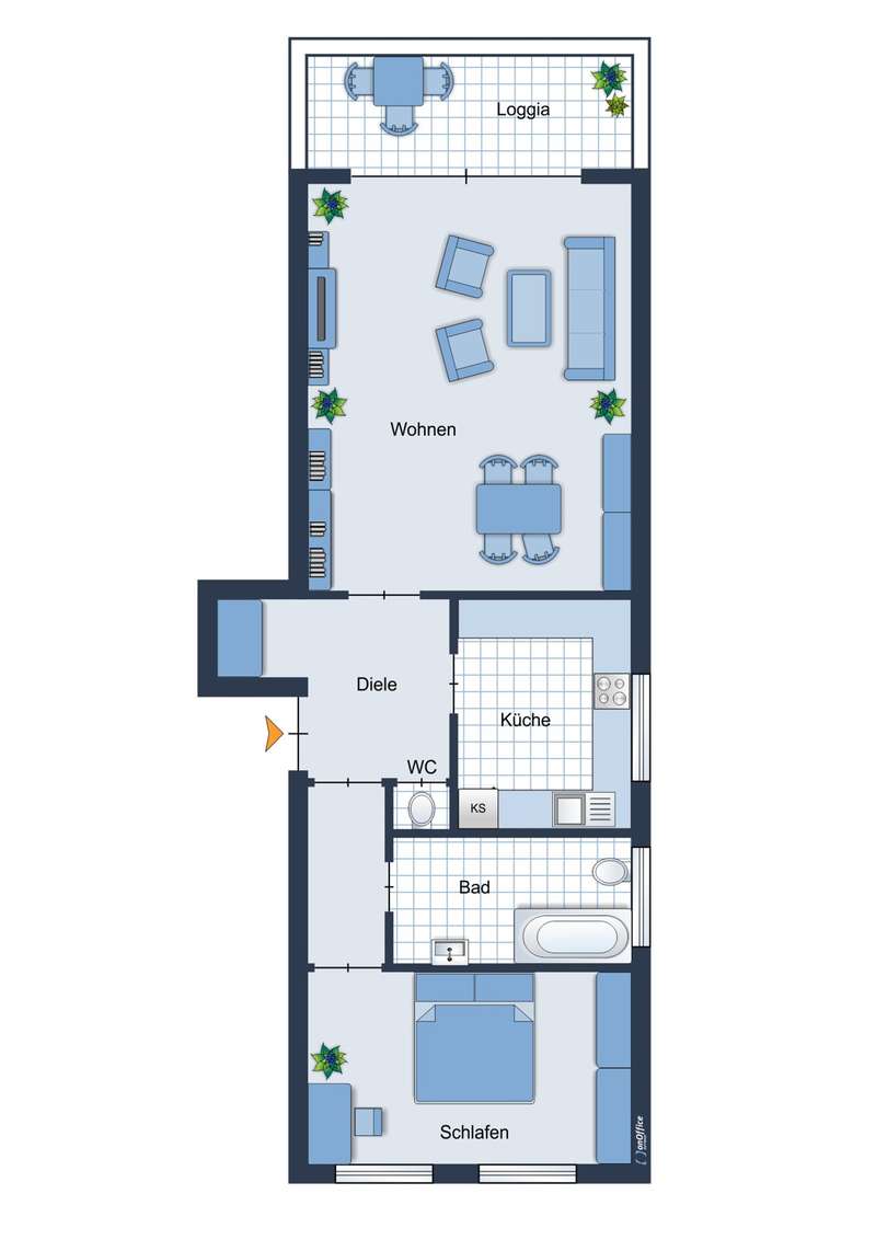This currently rented charming 2-room apartment with approx. 50.4 m² is located in one of the most sought-after residential areas of Berlin-Steglitz and combines urban living with high living quality. The building, dating from around 1961/1962, is in a well-kept condition. Upon entering the apartment on the 2nd floor on the right-hand side, you enter the hallway from which the living room, bedroom, bathroom and kitchen can be reached. In addition, the loggia adjoining the living room is a wonderful place to relax. A cellar accessible via the hallway rounds off the offer. In the immediate vicinity, well-kept green spaces and historic facades create a peaceful, almost village-like atmosphere - in the middle of the city. The Benjamin Franklin Hospital of the Charité is just a few minutes' walk away, as are numerous shopping facilities, restaurants and cafés. Schloßstraße, one of Berlin's most famous shopping streets, is within easy reach and offers everything your heart desires. The current basic rent since 03/2025 is approx. 360.68€. The current apportionment is approx. 244.00 €.