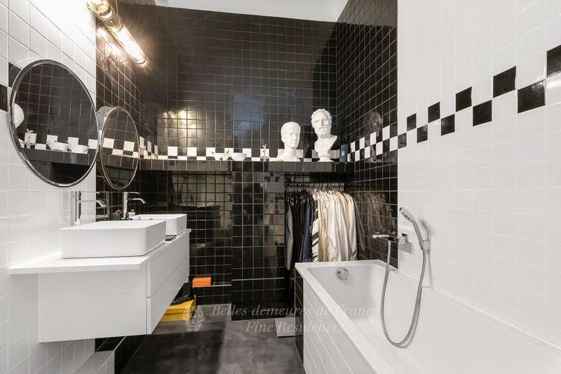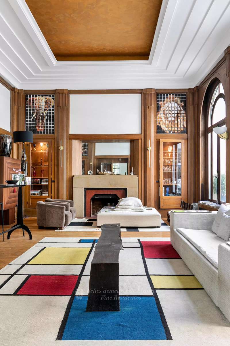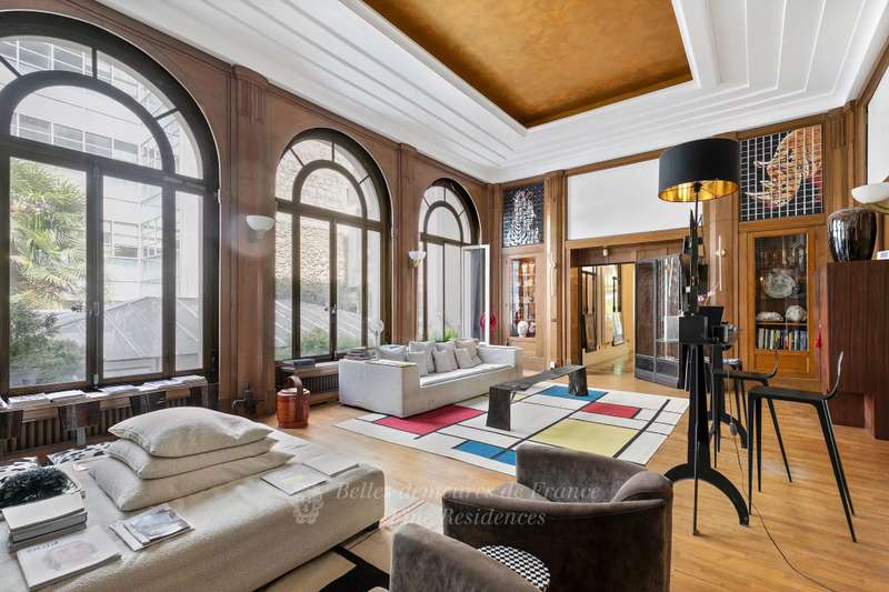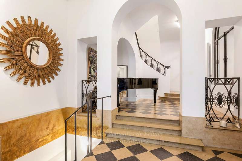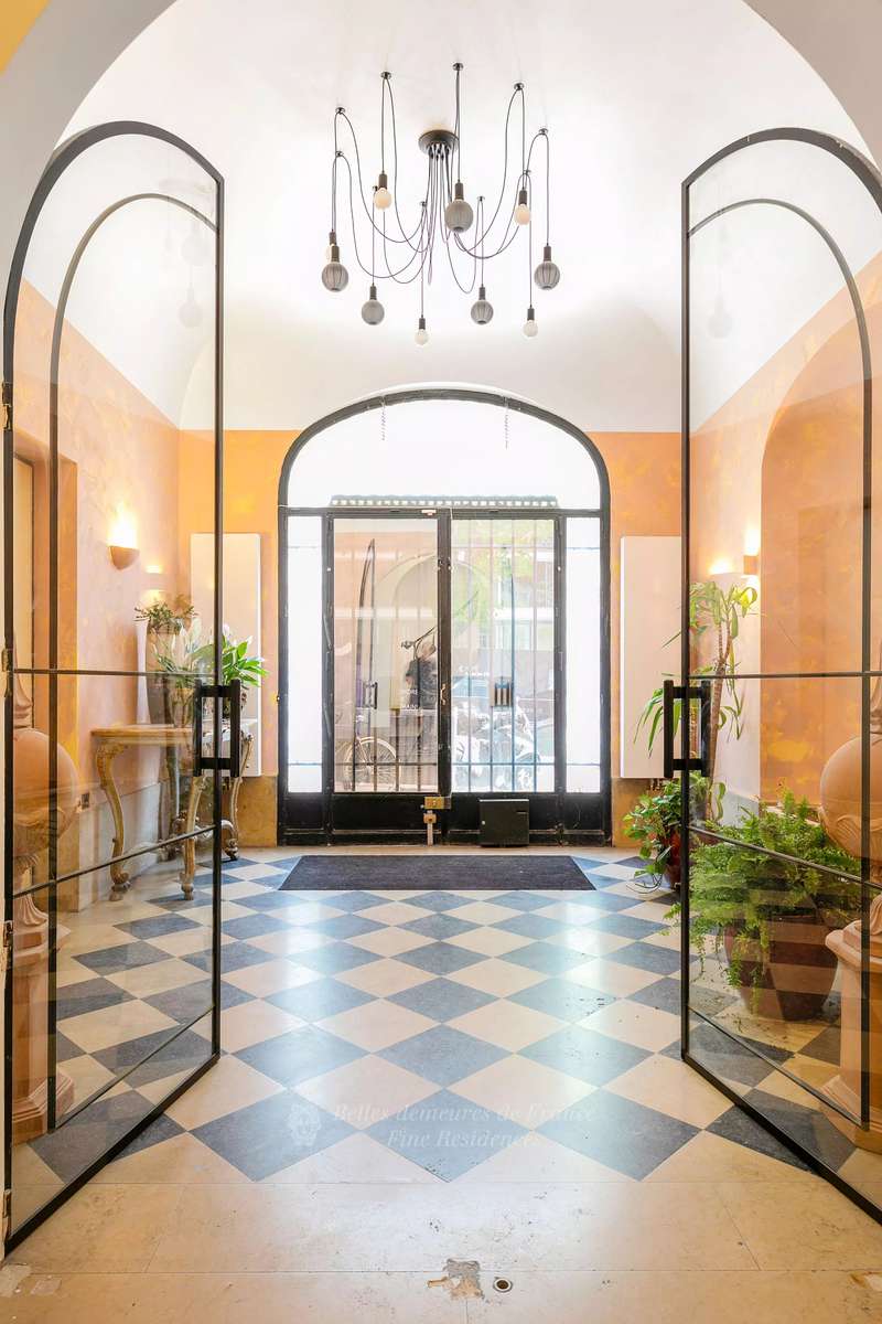 This recently renovated apartment is in a late 1920’s building located a stone’s throw from leafy Parc Monceau. Benefiting from an independent entry and with the feel of private mansion, it includes an entrance hall with a majestic Art Deco-style staircase accessing the “piano nobile” which includes a superb living/reception room in the pure Art Deco style and featuring a high ceiling and a glazed leafy patio. Also accessing the lift, this floor also includes a dining room with an adjacent kitchen, a master suite with a bath and shower room, and two bedrooms with shower rooms. 16 sqm of the apartment possible for commercial use. The ground floor comprises a studio apartment with a main room, a kitchenette, a mezzanine bedroom and a shower room. The half basement benefits from natural light and an independent entry from the basement, and comprises a spacious bedroom with a bathroom and dressing room. The fully fitted basement includes a fitness room with a shower and sauna, a recreation/screening room, a utility room, a boiler room and storage rooms. A rare opportunity in a prime location near Parc Monceau, the Champs Elysées, and Faubourg Saint Honoré’s art galleries and luxury boutiques.