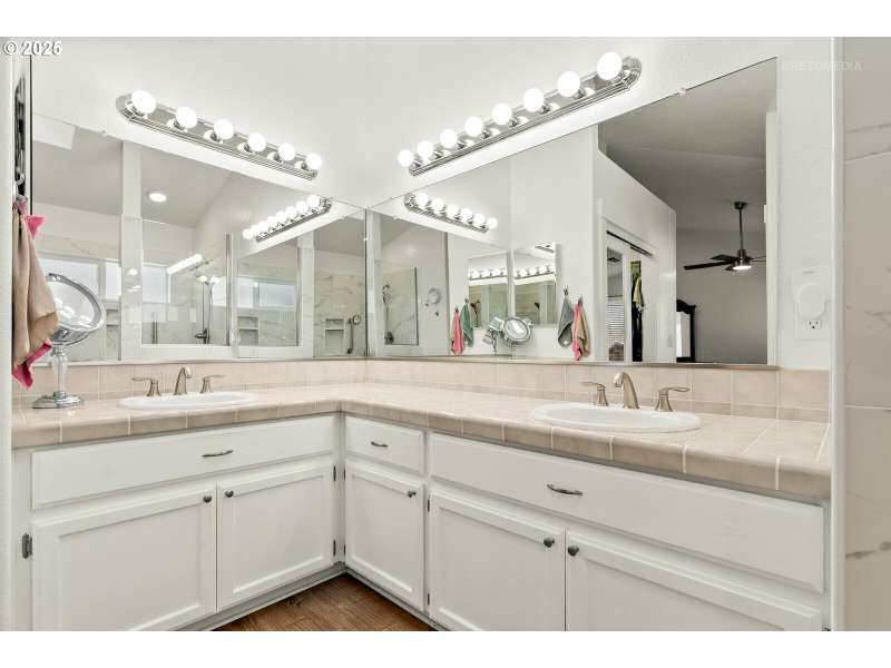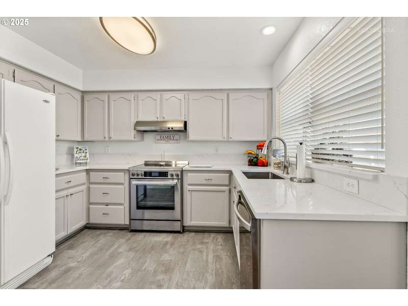 Come home to Sunburst Meadow and enjoy Washington County living at its finest! Here, on the corner lot of a peaceful neighborhood cul-de-sac with pride of ownership at every turn, you'll find a delightful blend of form and function. Step into a welcoming foyer and consider your choices: Entertaining? You'll love the easy flowing floorplan with high ceilings, cascading natural light and French doors to an expansive deck & dual patios in the enclosed back yard. Cooking for a family? Treasure the generous kitchen and dining area, with quartz countertops, beautifully updated appliances and custom built two-door walk-in pantry to make things easy. Gardening? Take advantage of the sunlight that hits this large lot, with carefully cultivated spaces, planter boxes and robust above-ground irrigation enhancing the landscape. Spending a quiet evening in? Curl up in front of the wood burning fireplace and enjoy the tranquility of your quiet street. If you work from home, the ground-level bedroom serves perfectly as a spacious office. If you commute, it's an easy jaunt to downtown Hillsboro, the Intel triangle or the light rail to take you into Portland. Participating in school activities or volunteering? You're ideally located near the beloved Patterson, Evergreen & Glencoe campuses. Calling it a day? Retire to a secluded primary suite and freshen up in an updated two-vanity bathroom set apart by an elegant marble-faced dual shower, sweeping countertops and wall-to-wall mirrors. At last, sleep in serenity beneath vaulted ceilings and skylight in your spacious bedroom. With designer touches encompassing fixtures, flooring, subtle paint accents and even the outlets & switches, you'll find no detail overlooked. Buy with confidence, as this well-built and continuously cared for dwelling has been inspected, with clean radon test & sewer scope, complete with a home warranty. [Home Energy Score = 2. HES Report at https://rpt.greenbuildingregistry.com/hes/OR10230165]