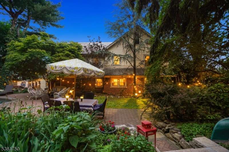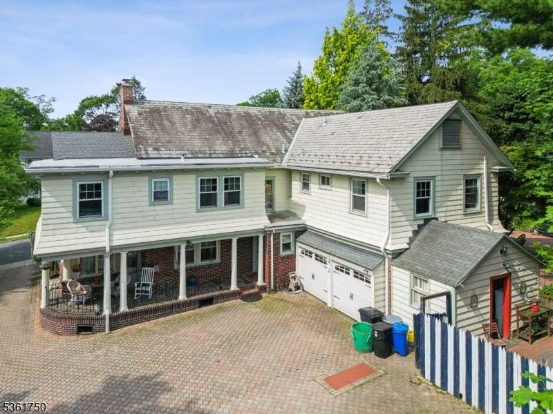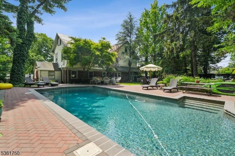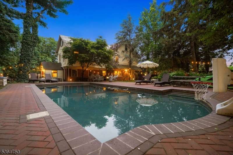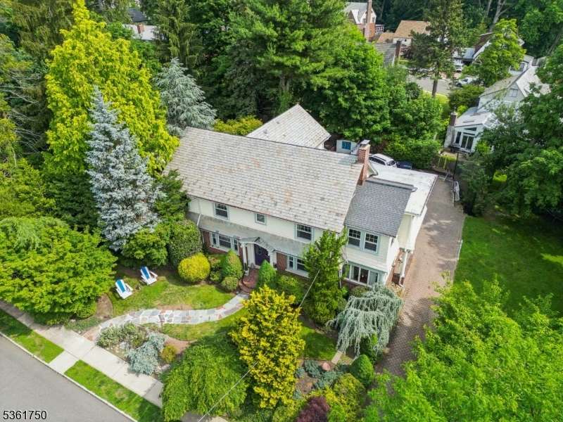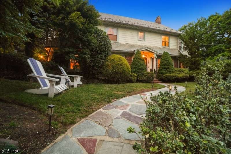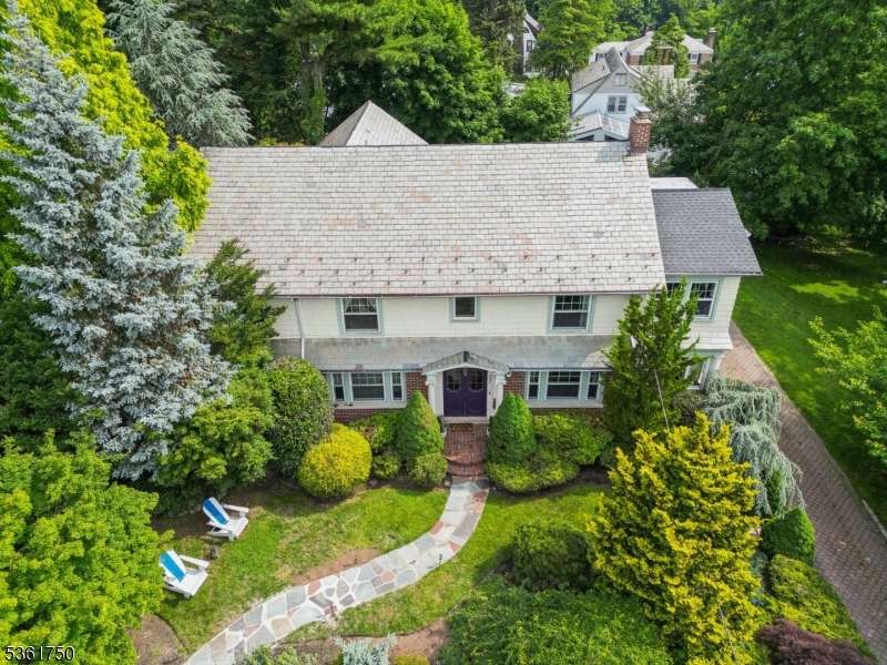 Tucked away on a serene, park-like 0.55-acre lot, this extraordinary Colonial is full of surprises. With curb appeal that's charmingly understated, the home opens up to reveal grand proportions, classic detail, and thoughtful modern updates including central air. The open foyer flows under graceful archways to an inviting sunroom/home office, formal living and dining rooms, and cozy family room. French doors lead out to a lush backyard sanctuary w/ a heated pool, hot tub, multiple grassy seating areas framed by lush landscaping - your private staycation. The eat-in kitchen blends vintage soul w/ modern ease: generous counters, cozy nooks, and space to gather. Distinct "wings" offer flexible living: 3 beds w/ a bonus room on one side w/ 2 baths, and 3 more large bedrooms w/ a den on the other and 2 baths. The main bedroom is expansive w/ an attached bath w/ double vanities and period details. The "captured bedroom" is currently being used as a closet. Upstairs, a finished attic offers an addnl. bedroom and den. The lower level includes a finished basement with charming period details, a prep kitchen and full bath. A well-maintained slate roof crowns this mini estate w/ 3 plots which includes a potential buildable side plot. All in a tranquil neighborhood with low taxes, close to schools, NYC transport (free jitney on street) and major highways. A true hidden gem gracious and full of character. Fireplace/Chimneys/Flues, hot tub and pool room being sold as is.