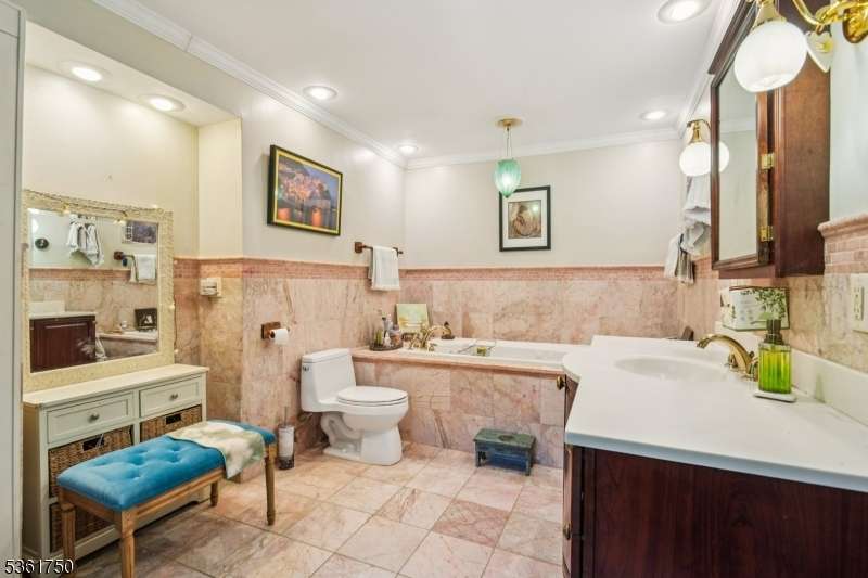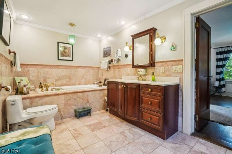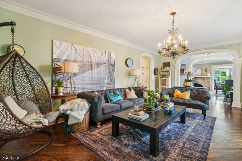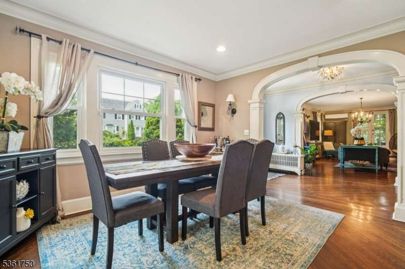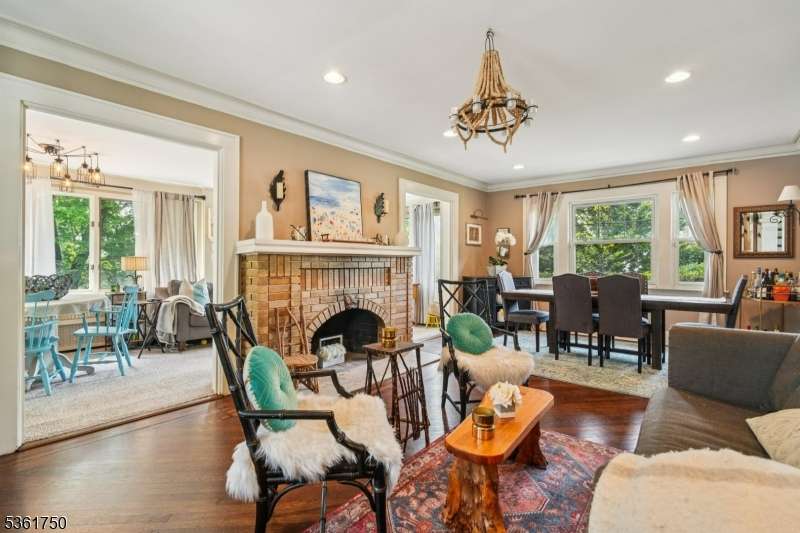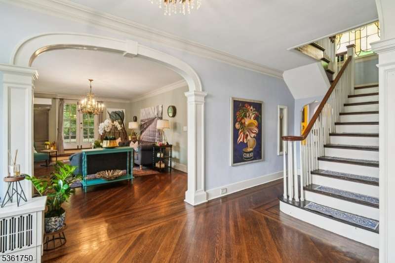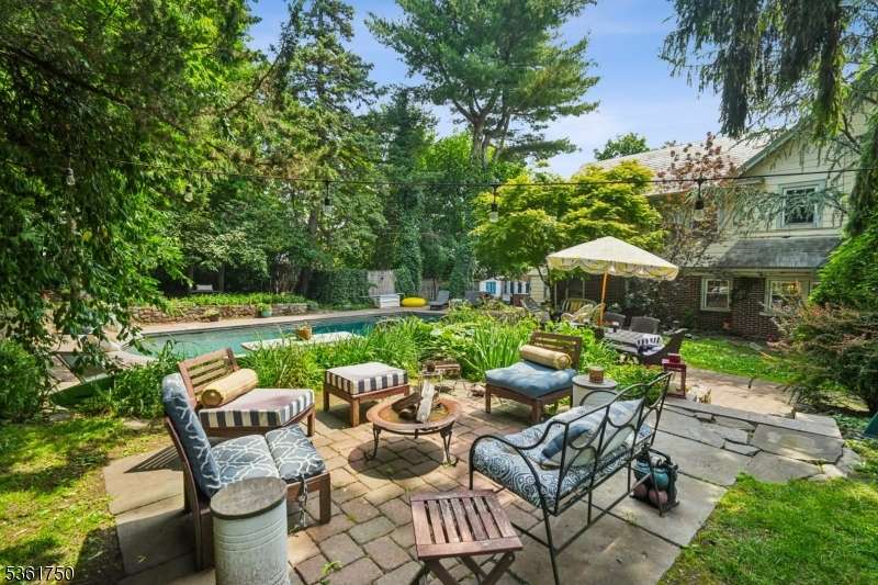 Tucked away on a serene, park-like 0.55-acre lot, this extraordinary Colonial is full of surprises. With curb appeal that's charmingly understated, the home opens up to reveal grand proportions, classic detail, and thoughtful modern updates including central air. The open foyer flows under graceful archways to an inviting sunroom/home office, formal living and dining rooms, and cozy family room. French doors lead out to a lush backyard sanctuary w/ a heated pool, hot tub, multiple grassy seating areas framed by lush landscaping - your private staycation. The eat-in kitchen blends vintage soul w/ modern ease: generous counters, cozy nooks, and space to gather. Distinct "wings" offer flexible living: 3 beds w/ a bonus room on one side w/ 2 baths, and 3 more large bedrooms w/ a den on the other and 2 baths. The main bedroom is expansive w/ an attached bath w/ double vanities and period details. The "captured bedroom" is currently being used as a closet. Upstairs, a finished attic offers an addnl. bedroom and den. The lower level includes a finished basement with charming period details, a prep kitchen and full bath. A well-maintained slate roof crowns this mini estate w/ 3 plots which includes a potential buildable side plot. All in a tranquil neighborhood with low taxes, close to schools, NYC transport (free jitney on street) and major highways. A true hidden gem gracious and full of character. Fireplace/Chimneys/Flues, hot tub and pool room being sold as is.