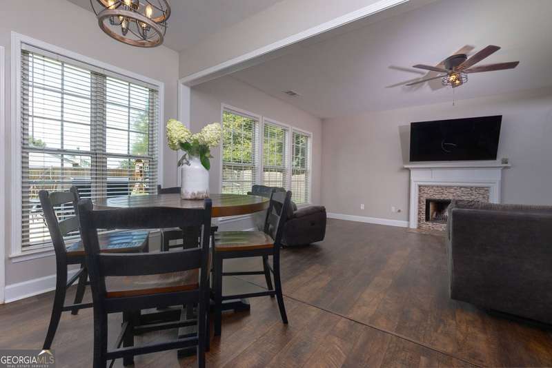 Charming Home on a Spacious Corner Lot in Desirable Brookshire! Close to Downtown Woodstock and The Outlet Shoppes of Atlanta. Welcome to this beautifully updated two-story traditional nestled on a large, fenced-in corner lot in the sought-after Brookshire community. Step inside to brand new luxury vinyl plank flooring throughout the main living areas and enjoy the open-concept living/dining room-perfect for entertaining. The kitchen is open and bright with sleek stainless steel appliances, a cozy breakfast area, and views into the spacious family room featuring a warm fireplace. A convenient powder room and a two-car garage complete the main level. Large fenced in backyard with oversized patio and firepit, great for cookouts and the perfect spot for playground/trampoline and all the outdoor fun. Upstairs, you'll find a generous primary suite with an oversized en-suite bath that includes a walk-in shower, garden tub, and a large walk-in closet. Three additional bedrooms share a beautifully updated hall bathroom with a double vanity and modern stand-up shower. The laundry room is also conveniently located upstairs. Freshly painted throughout with all-new lighting, this home is move-in ready! Enjoy resort-style amenities including two sparkling pools, tennis courts, a playground, and more. Don't miss this opportunity to own a stunning home in one of the area's most popular neighborhoods! Great location close to the outlet mall and downtown Woodstock and Canton.