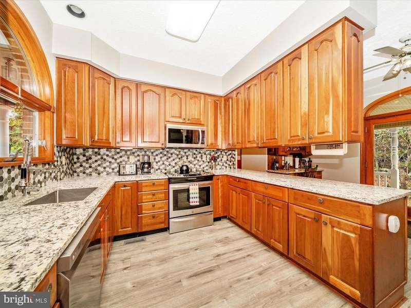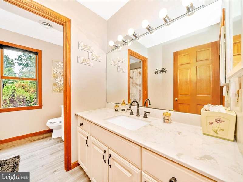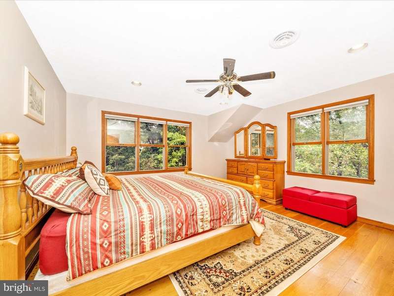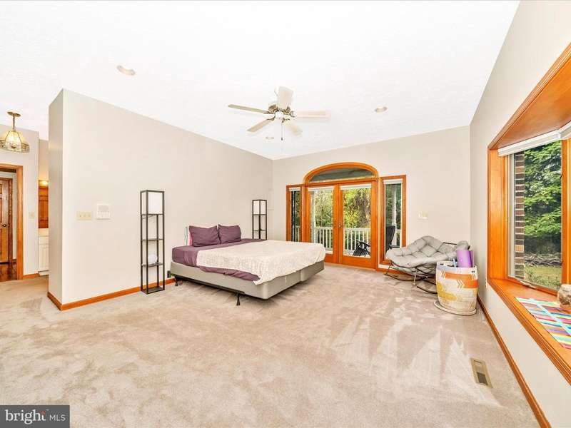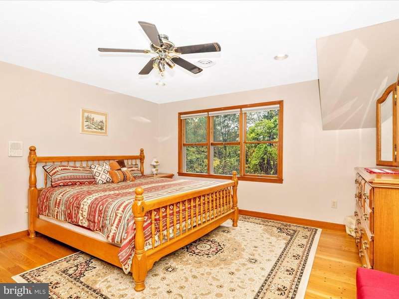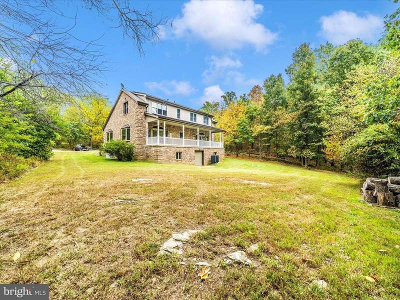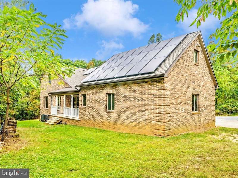 Welcome to Everlee Acres, a secluded estate nestled on over 57 acres of mature woodland in North Frederick County, near Cunningham Falls State Park and other recreational destinations. This all-brick Cape Cod offers more than 3,000 square feet of finished living space, with a spacious main-level primary suite featuring a private bath and French doors that open to a full-length covered porch. The home showcases oak floors with wood pegs, solid wood doors, and large Andersen windows in every room, offering panoramic views of the surrounding forest. The main level includes a formal living room, dining room, and a family room or study, 2 half baths with a rough-in for a wet bar. A second deep porch off the kitchen provides a perfect setting for outdoor dining and entertaining. The recently updated kitchen features solid cherry cabinetry, granite countertops, a custom tile backsplash, stainless steel appliances, and a cleverly designed pantry with hinged storage. Upstairs, three additional bedrooms and a full bath are accessed via a dramatic oak staircase. Each bedroom includes deep closets, and the fourth bedroom or home office offers walk-in access to the attic for additional storage. The walk-out basement spans over 2,000 square feet and includes full-size windows, a rough-in for a future full bath, and a multi-fuel HVAC system designed to run on electricity, propane (buried, owned tank), oil, and wood. A separate heat pump serves the second floor, and an on-demand tankless water heater is available if desired. The home is wired with a Generac backup generator and includes owned solar panels with documentation available for review. A solar water heater is also present in the lower level but is not currently installed. The roof was replaced in 2021, and the solar panels were reinstalled at that time. Additional features include fiber optic internet access, a ChargePoint HomeFlex Level 2 EV Charger in the attached garage, and flat pasture and garden space behind the NEW multi-car garage pole building-ideal for growing produce or establishing a hobby farm. The property also includes a historic outbuilding, scenic trails, and natural stone formations. Everlee Acres offers a rare opportunity to own a private retreat with modern amenities, energy independence, and endless potential. Whether you're seeking a homestead, equestrian property, or peaceful escape, this extraordinary home is ready to welcome you.
