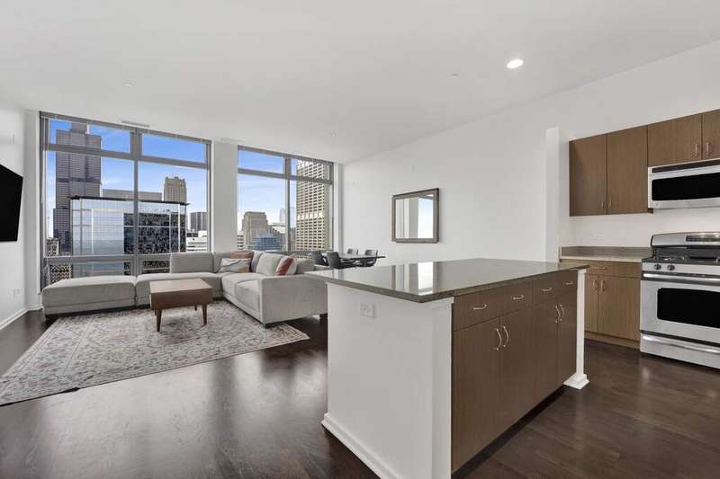 Step into luxury living with this spacious 1-bedroom, 1.5-bathroom condo located in the prestigious Park Monroe building, right in the vibrant heart of Chicago's Loop. This modern residence features floor-to-ceiling west-facing windows that flood the space with natural light and showcase stunning city views. The unit boasts hardwood floors throughout the main living areas, an open-concept kitchen with granite countertops, stainless steel appliances, and a generously sized island. The large bedroom includes newer carpeting, custom built-in closets and an en suite bathroom with a walk-in shower, separate soaking tub, and oversized vanity. Additional half bath and a brand new in unit washer/dryer. Enjoy the convenience of a deeded garage parking space available for an additional amount, along with a dedicated storage locker Included in the Price. Top notch amenities featuring 24hr door staff, on site management, indoor pool, outdoor jacuzzi, party room, media room, fitness room, roof top sundeck & garden and an indoor dog room. Unbeatable location just steps from Millennium Park, Grant Park, Lake Michigan, The Art Institute, The Bean, top dining, shopping, and nightlife, public transit, and directly across from the historic University Club of Chicago and The Palmer House. Condo being offered fully furnished!