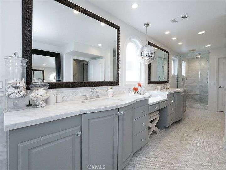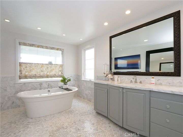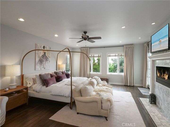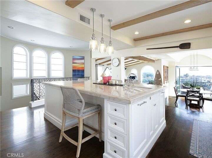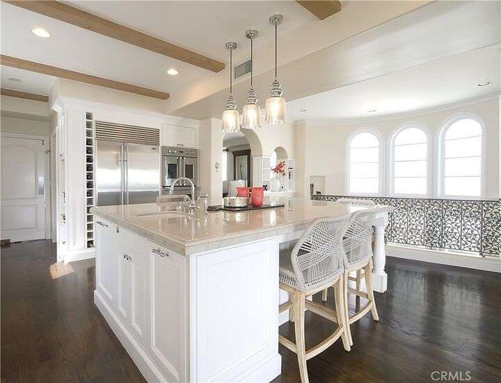 Located on one of the very best streets in the Manhattan Beach Sand Section, this stunning home has it all. Panoramic ocean views to the west and city light views to the east - you'll never want to leave. Boasting 5 beautiful bedrooms, 4.5 baths and over 4,300 sq ft of pure luxury. There are three large and functional living spaces including a great room with fireplace, a living room with bar, and another entertaining room with fridge/freezer and dishwasher opening up to a fabulous front patio with BBQ, wine fridge and built in heaters. An incredible master suite with balcony, large walk in closet and a remodeled master bath with spa-like tub, double sinks, steam shower, and a ton of storage. The sun drenched third floor is wide open with a perfectly appointed kitchen with Thermador stove, Viking ovens and a brand new Sub-Zero fridge. The entire 3rd floor has panoramic ocean and city light views that overlook an idyllic cul de sac with hidden grassy area that is perfect for children and small pets to play. An easy 4 blocks from the one of the best beaches in California, a short distance to the vibrant downtown MB and sleepy North MB, across the street from AWARD WINNING Grandview elementary school and close to parks and the community center. Other noteworthy amenities include a water softener and filtration system, outdoor shower, central air conditioning, cold plunge and even an infared sauna! You can have it all!!